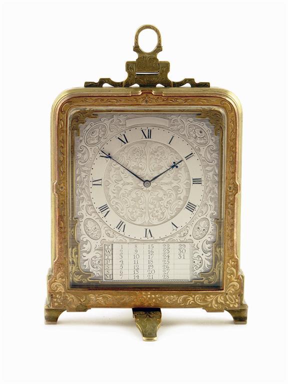 A Victorian brass strut clock attributed to Thomas Cole and retailed by Hunt & Roskell