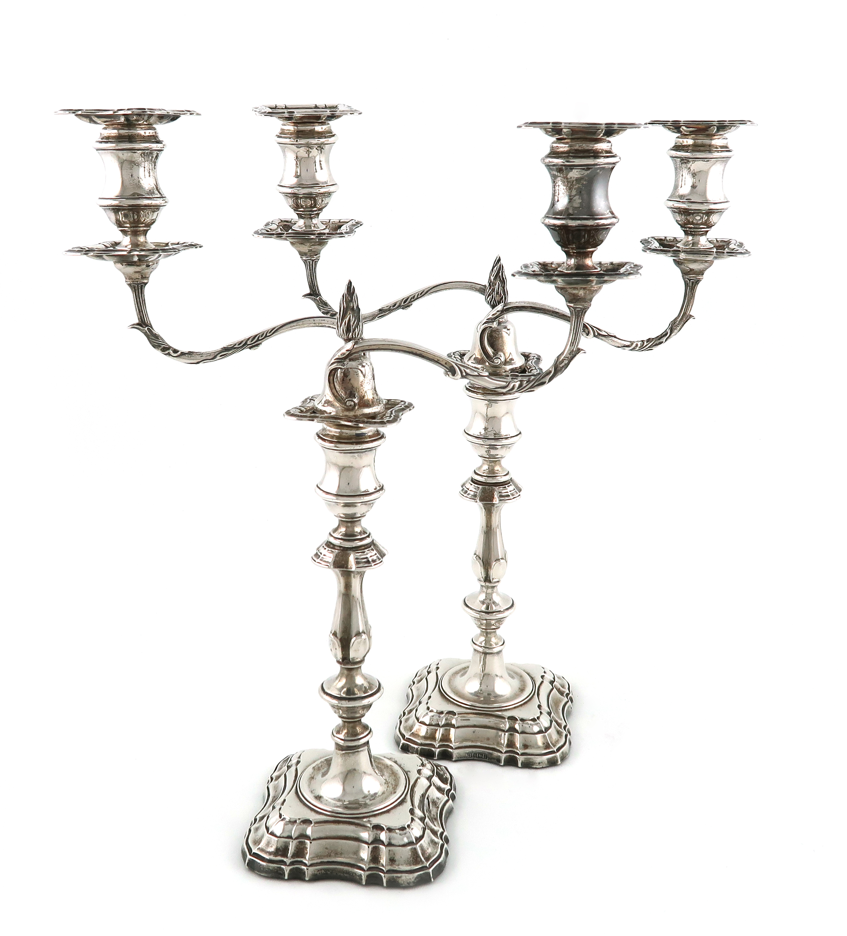 A pair of Edwardian silver two-light candelabra,