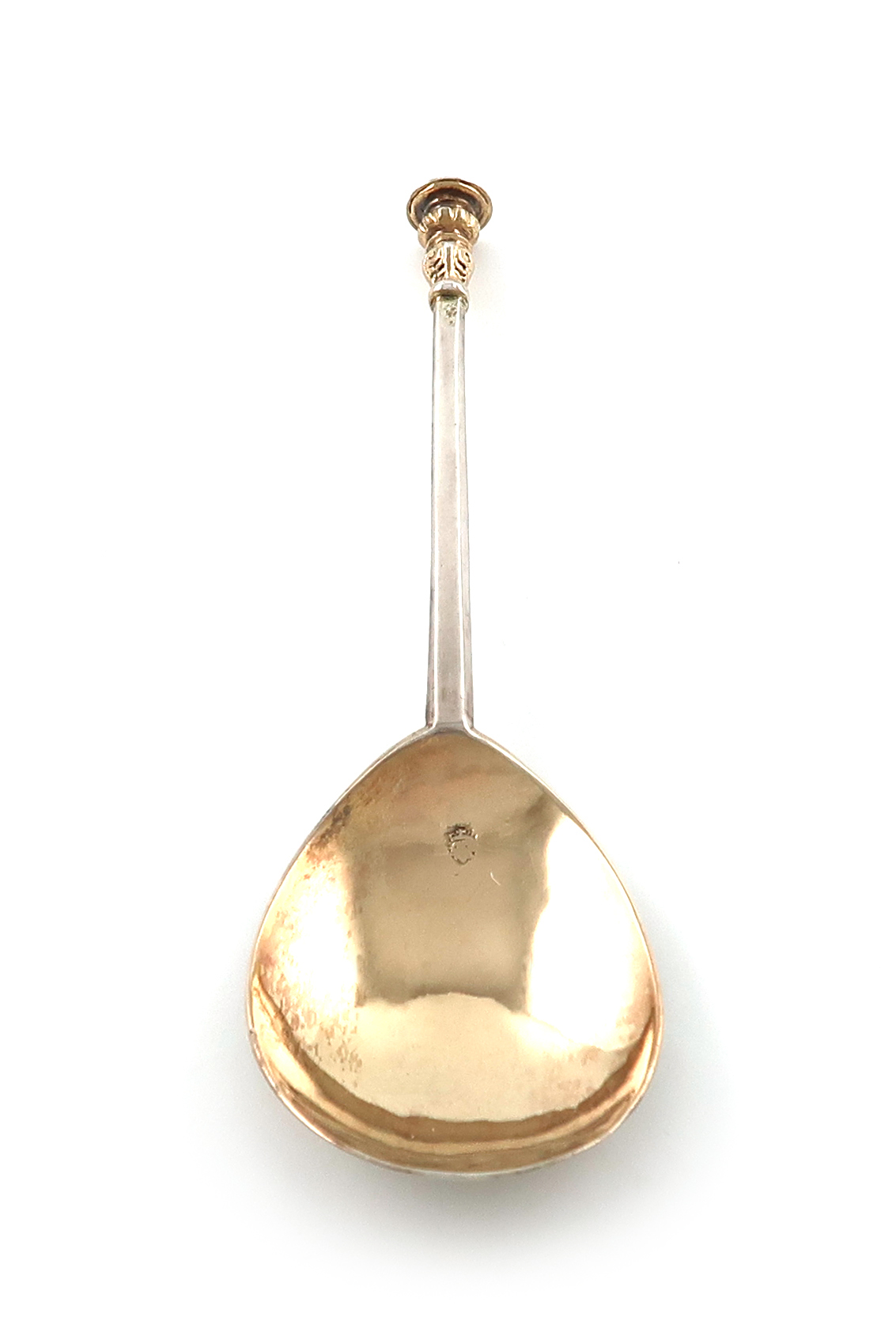 the fig-shaped bowl gilded, faceted slight tapering stem, with a gilded seal-top, prick-dot initialled 'T.C' over '1656' over 'I.T', length 17.1cm, approx. weight 1.4oz.