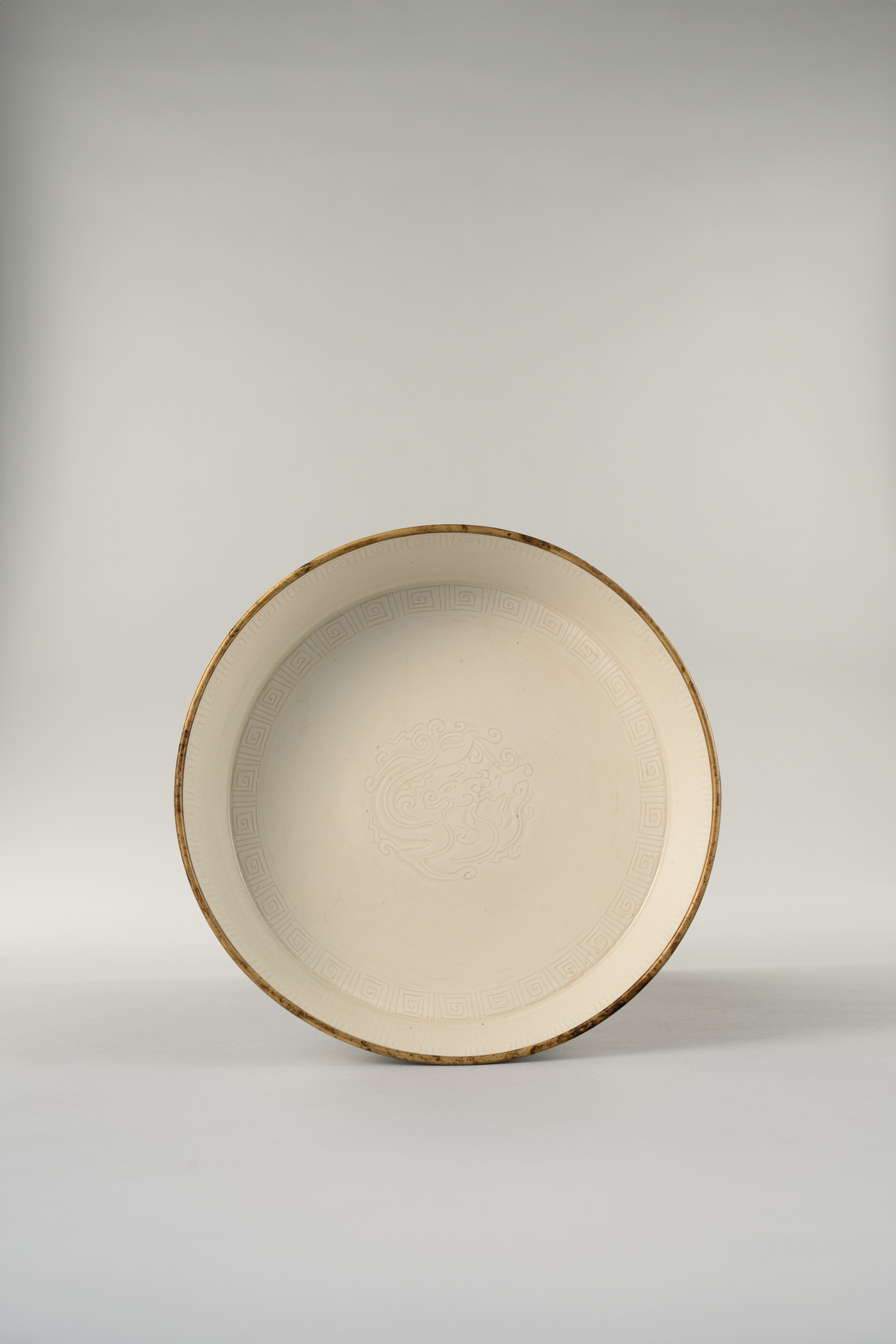 The steep sides on the present washer appear to reference a metal prototype. Rose Kerr writing on the collection of Song ceramics in the Victoria and Albert Museum, states that the “fact that Ding ware was an official ware made one feature of its decoration especially pronounced. This was its tendency to mimic other, more precious materials such as gold and silver, huge quantities of which were stored in palace treasures”. Cf. Rose Kerr, Song Ceramics, p.102.