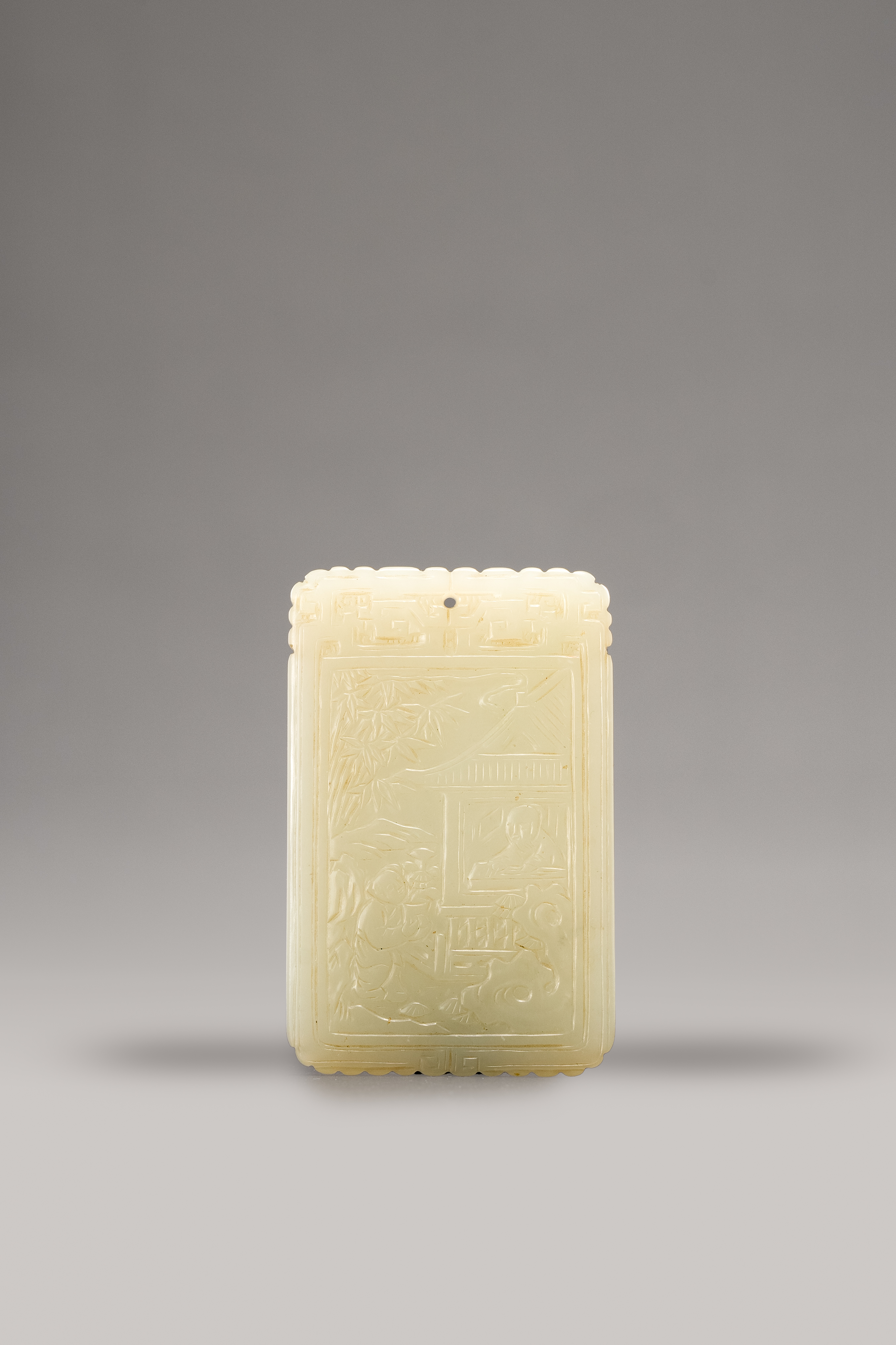 A CHINESE PALE CELADON JADE RECTANGULAR PENDANT