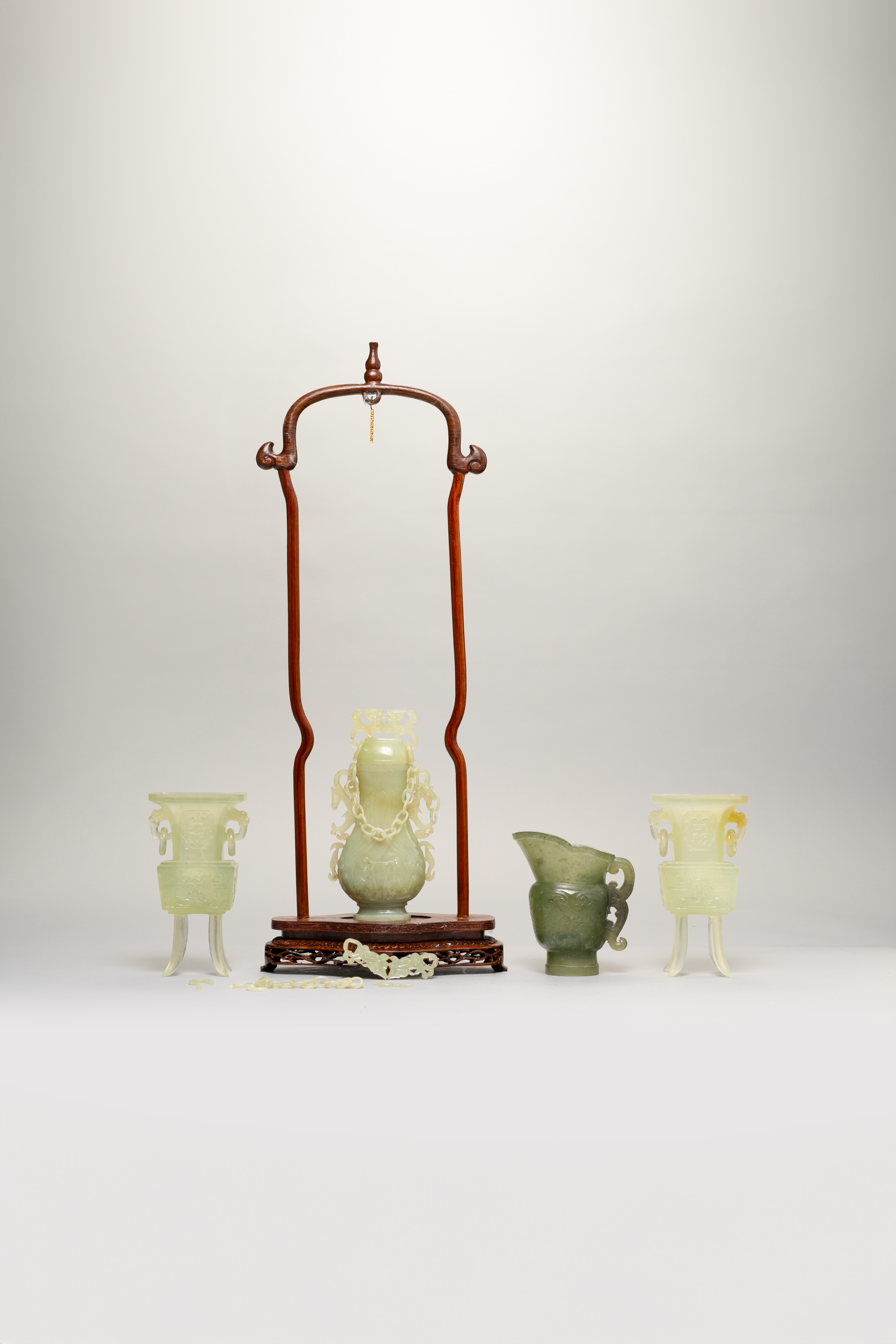 FOUR CHINESE ARCHAISTIC BOWENITE VESSELS