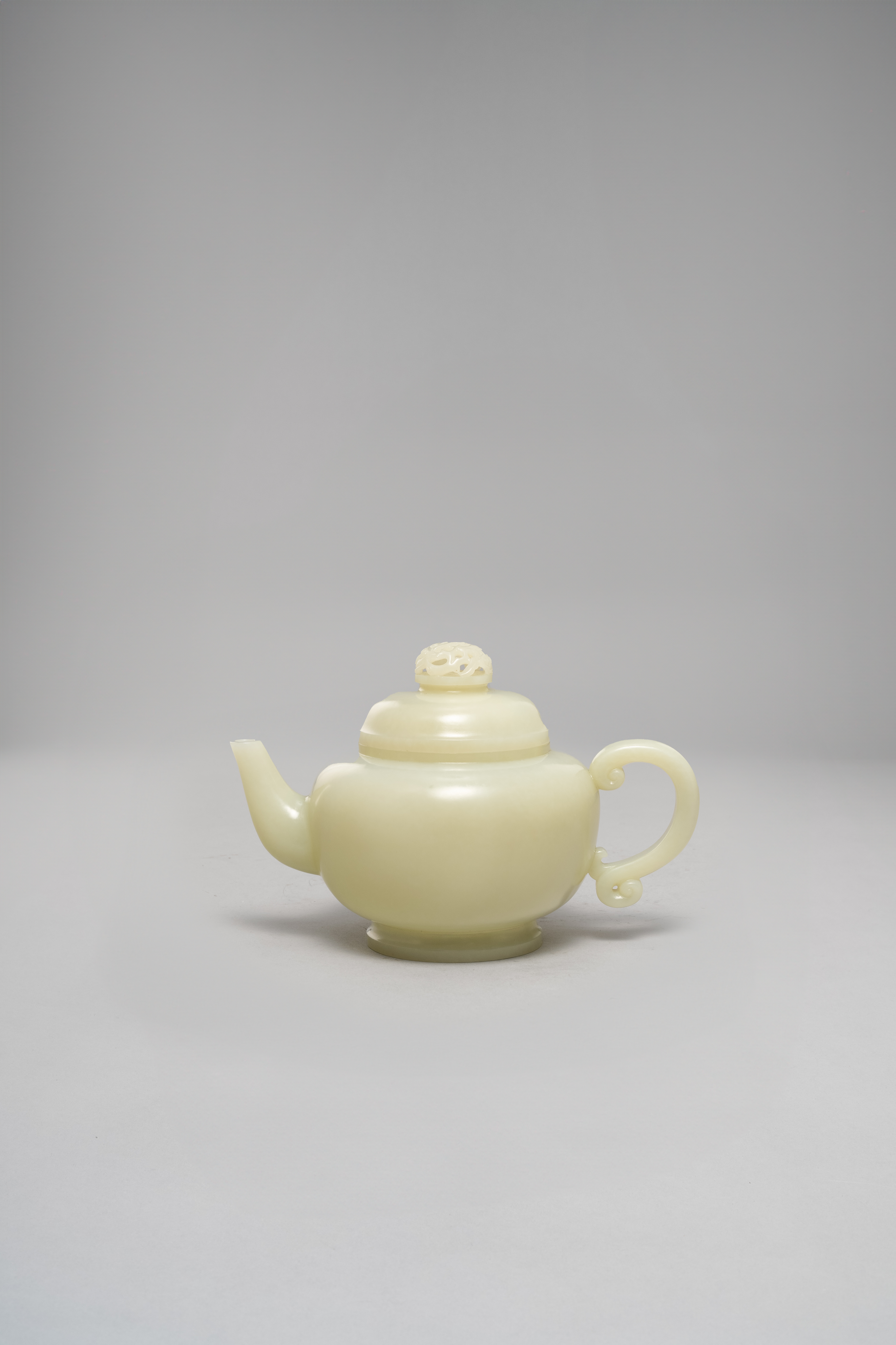 A CHINESE PALE CELADON JADE TEAPOT AND COVER