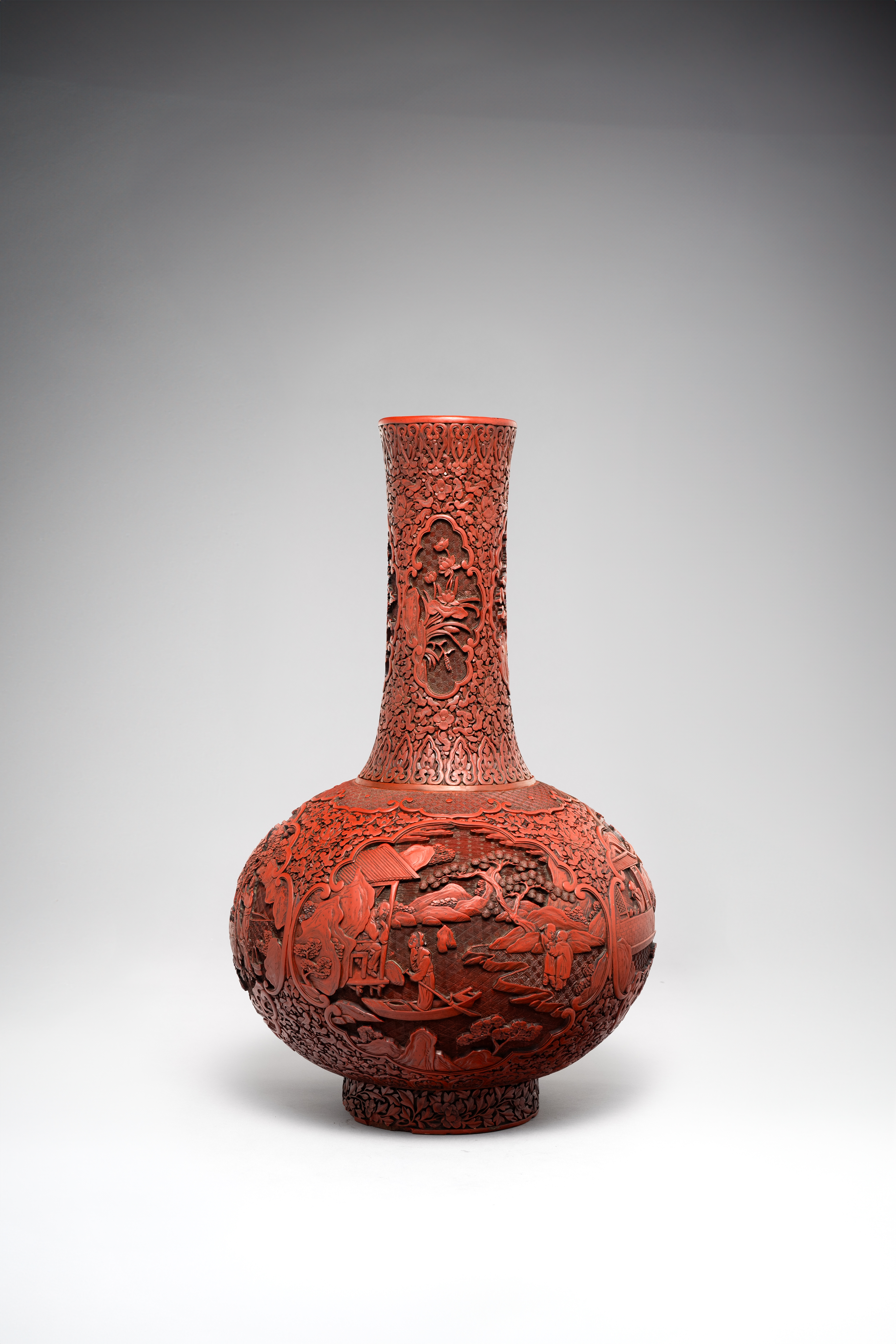 A LARGE CHINESE CINNABAR LACQUER BOTTLE VASE