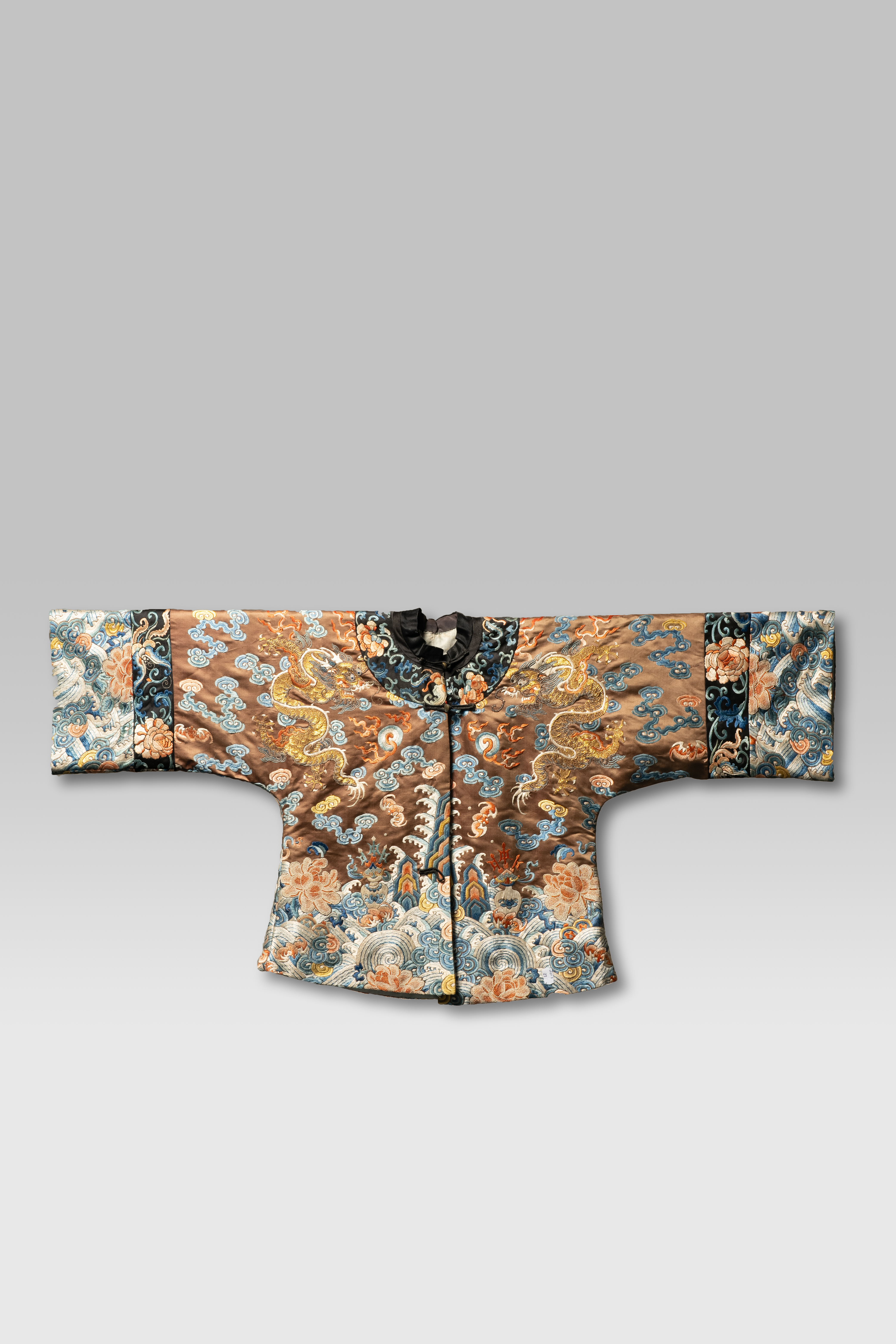 A CHINESE BROWN SILK 'DRAGON' JACKET