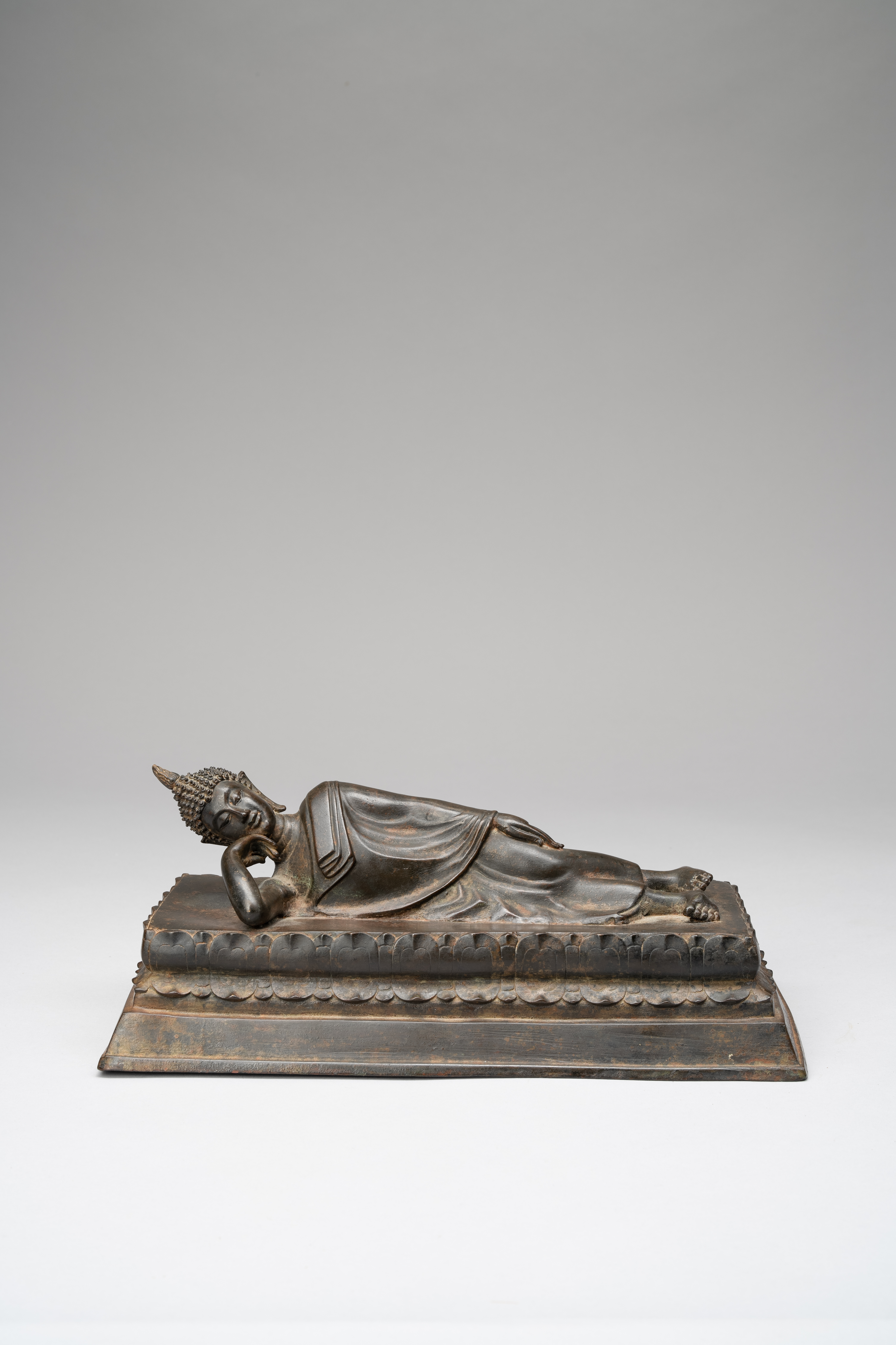 A LAOTIAN BRONZE RECLINING FIGURE OF BUDDHA