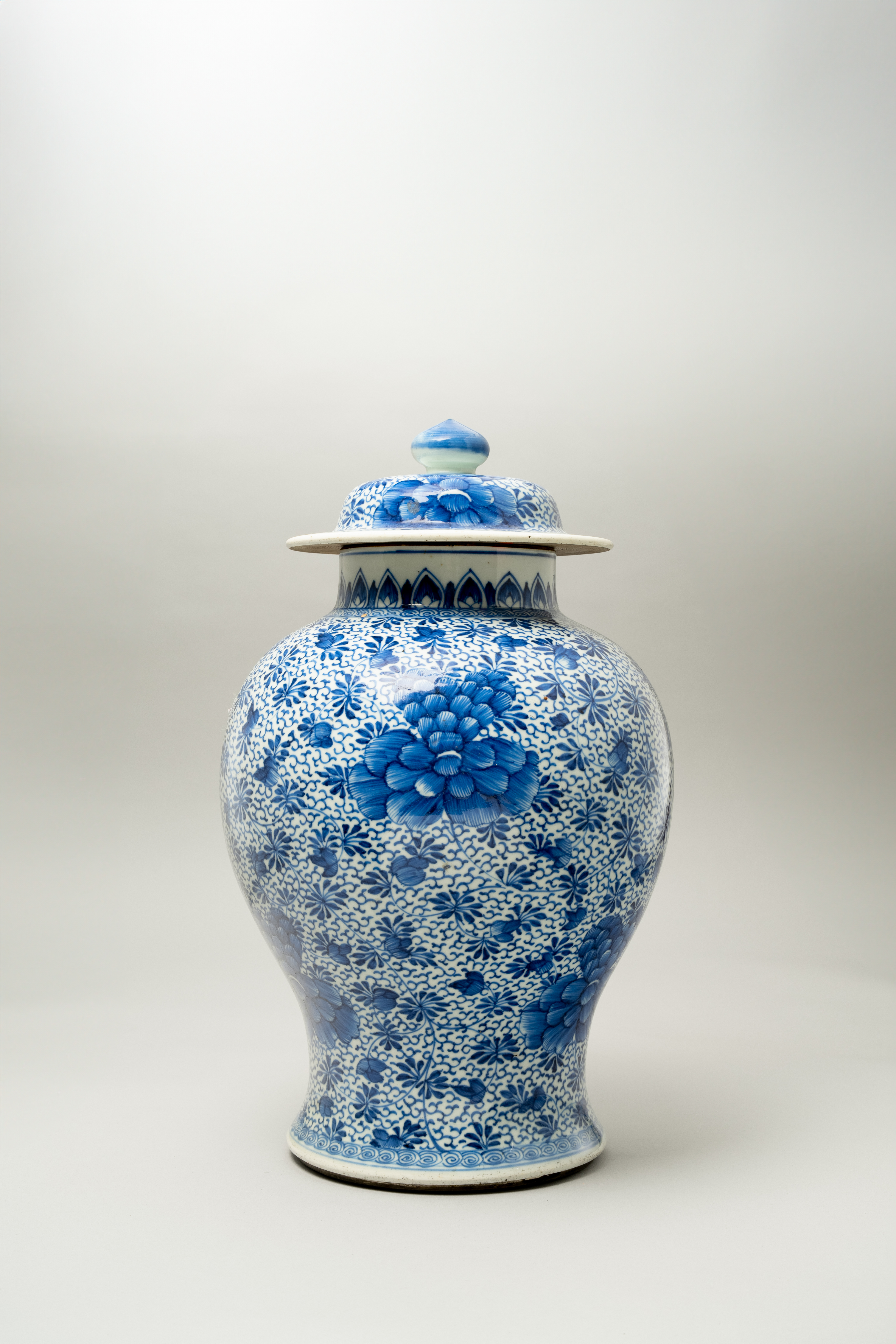 A CHINESE BLUE AND WHITE BALUSTER VASE AND COVER