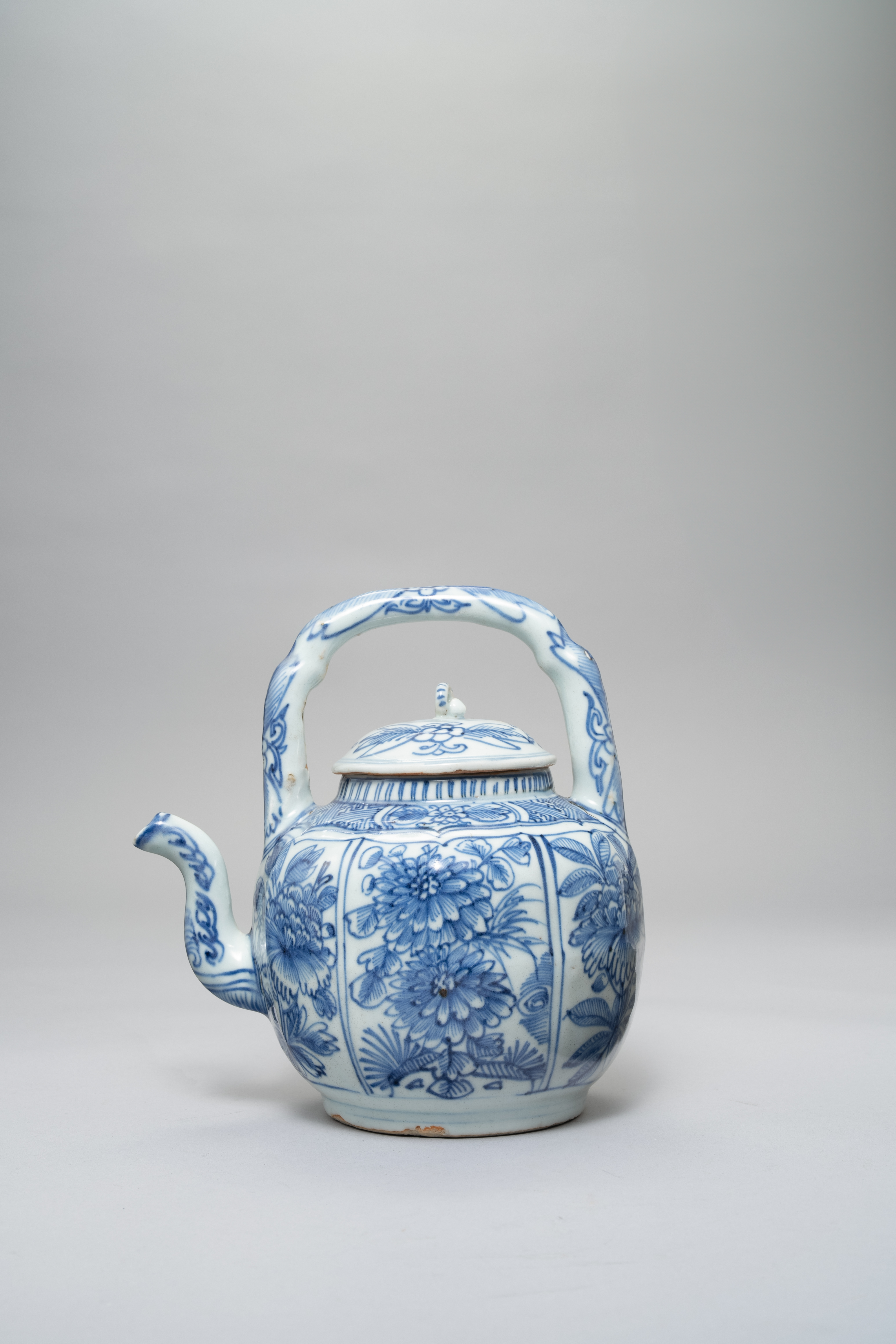 A CHINESE BLUE AND WHITE KRAAK WINE EWER AND COVER