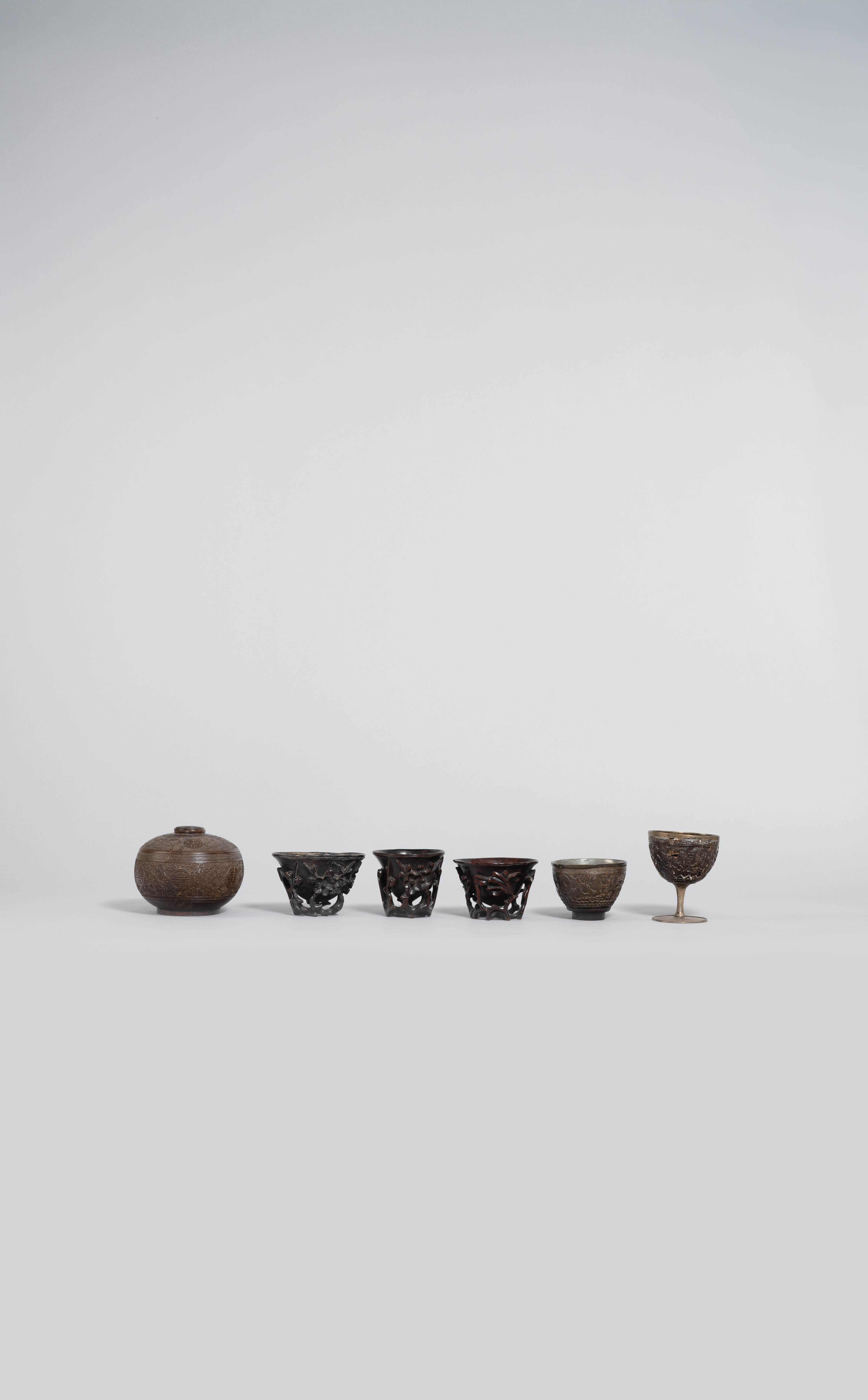 THREE CHINESE HARDWOOD LIBATION CUPS