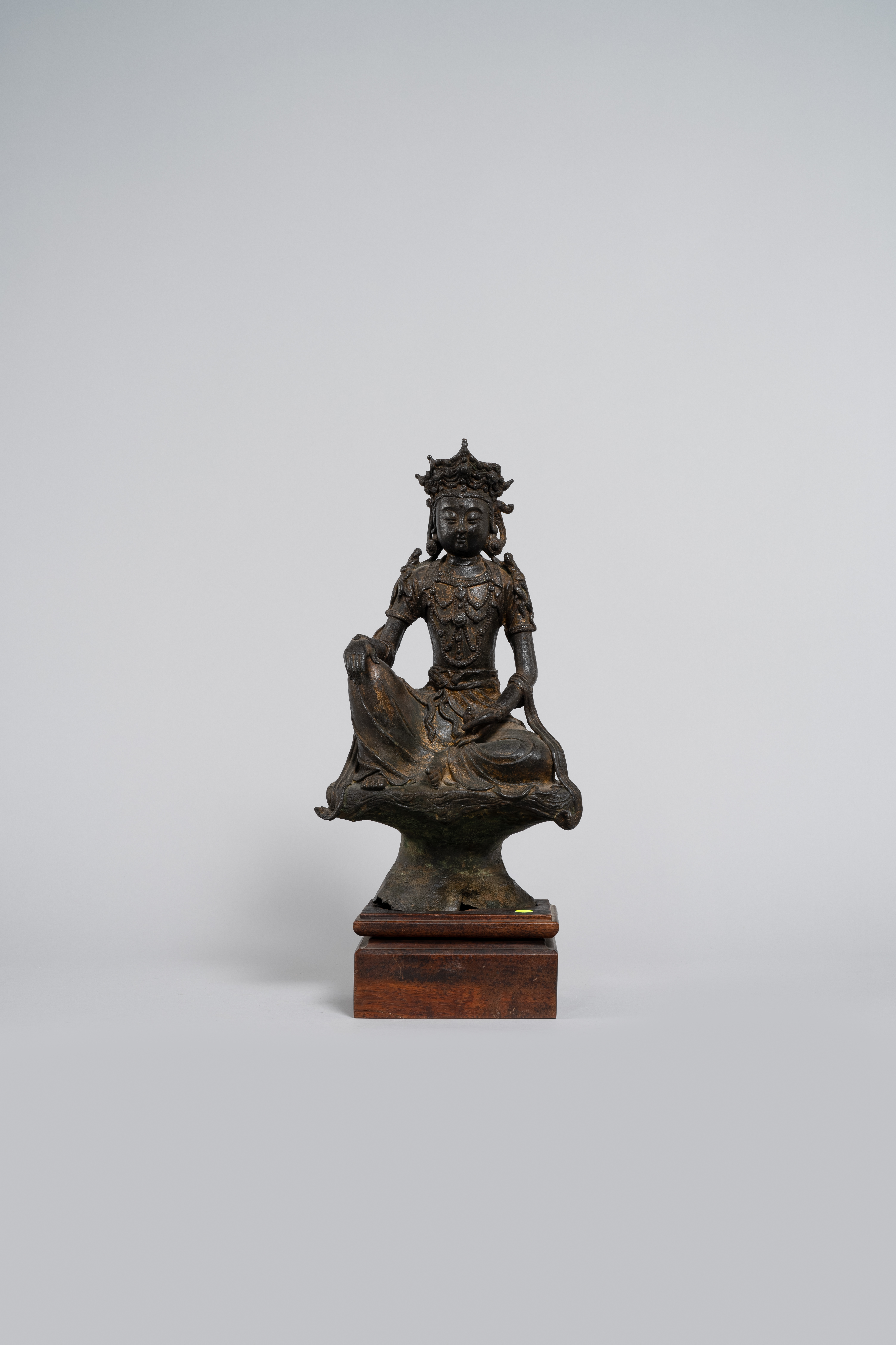 A CHINESE BRONZE FIGURE OF SEATED BODHISATTVA