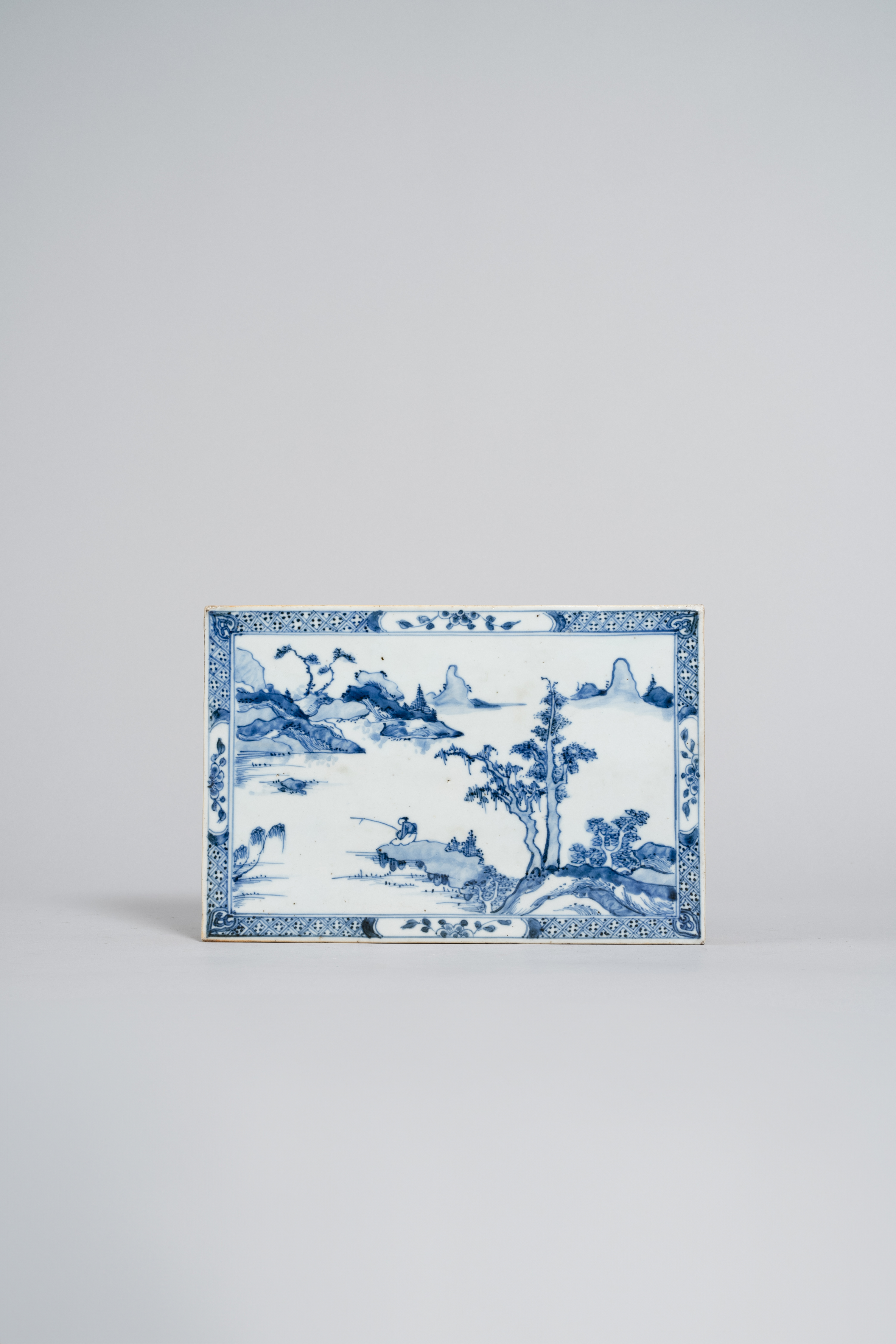 A CHINESE BLUE AND WHITE RECTANGULAR TILE