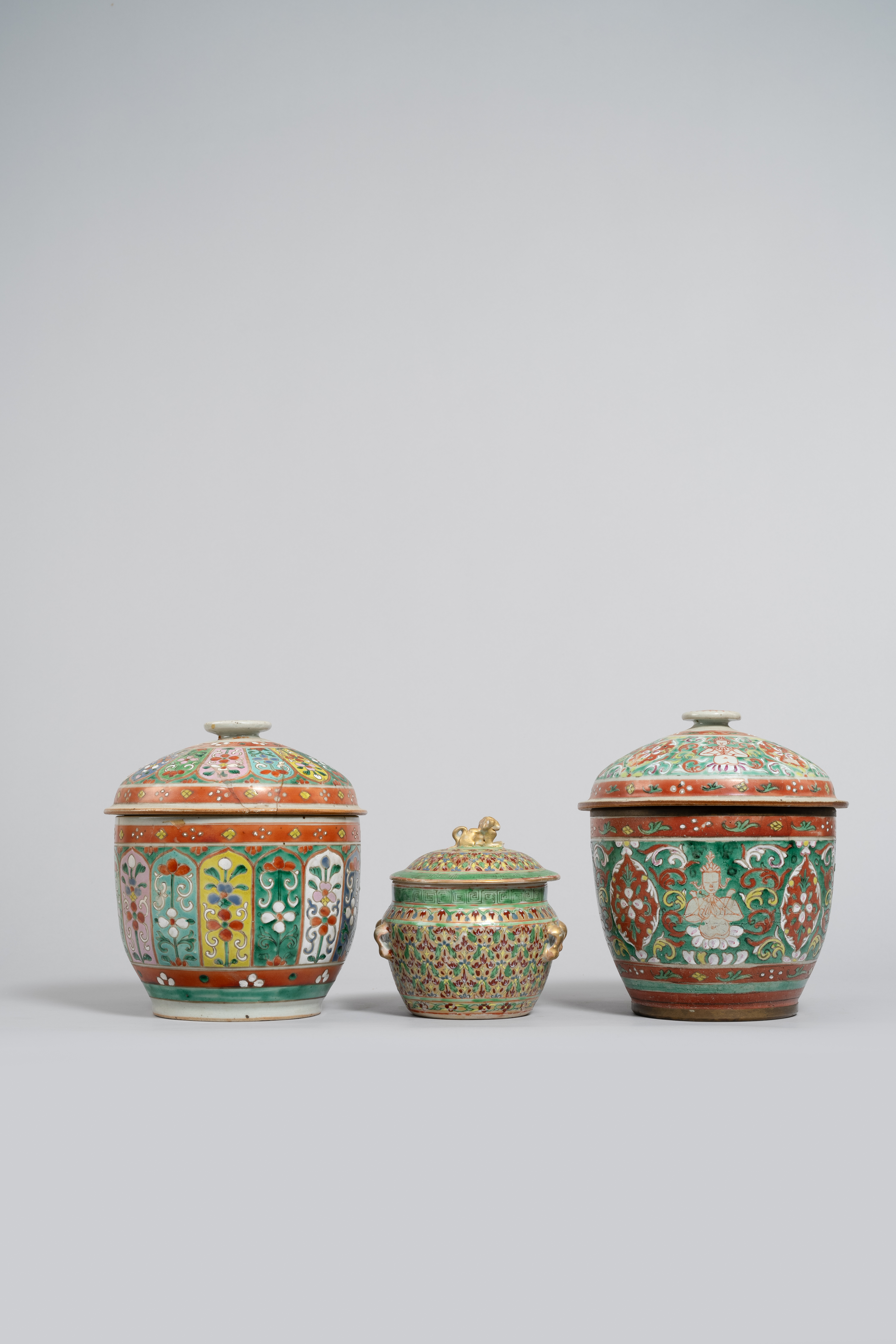 THREE CHINESE THAI MARKET BOWLS AND COVERS