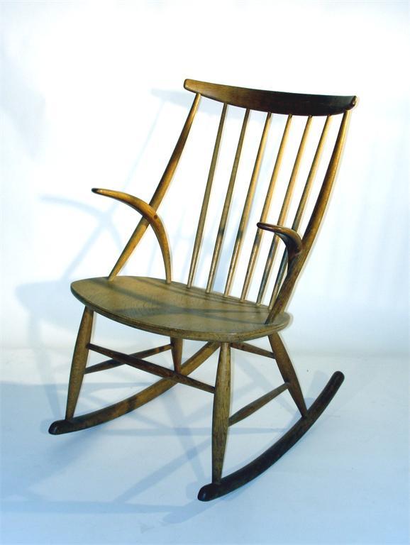 A Danish oak rocking chair by Illum Wikkelso for N Eilerson, unsigned 90cm. high