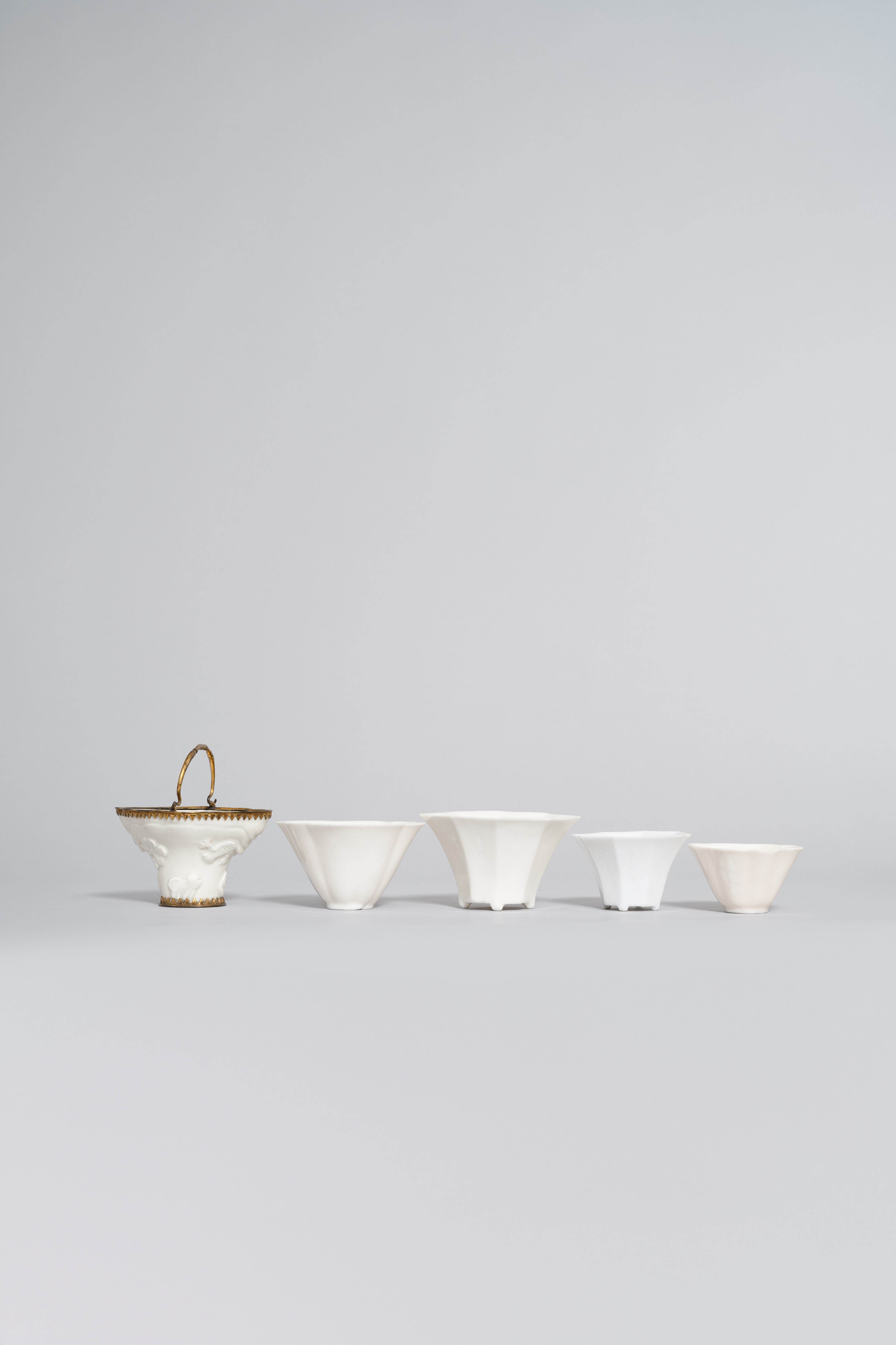 FIVE CHINESE BLANC DE CHINE LIBATION CUPS