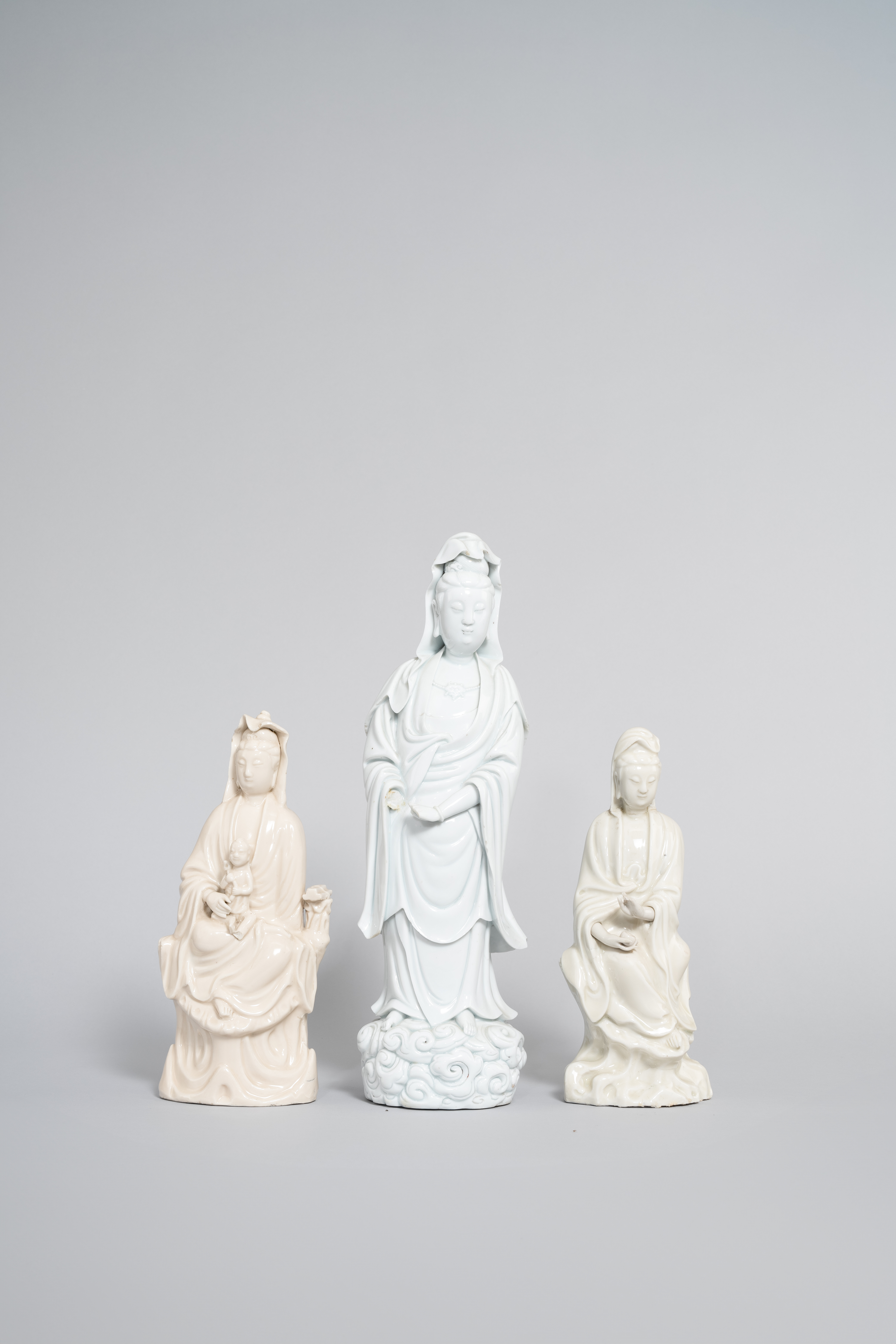 THREE CHINESE BLANC DE CHINE FIGURES OF GUANYIN