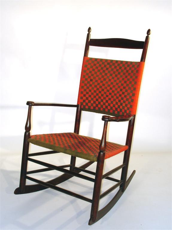 A Shaker's No.6 rocking chair with woven fabric seat and back support stamped makers mark 112cm. high