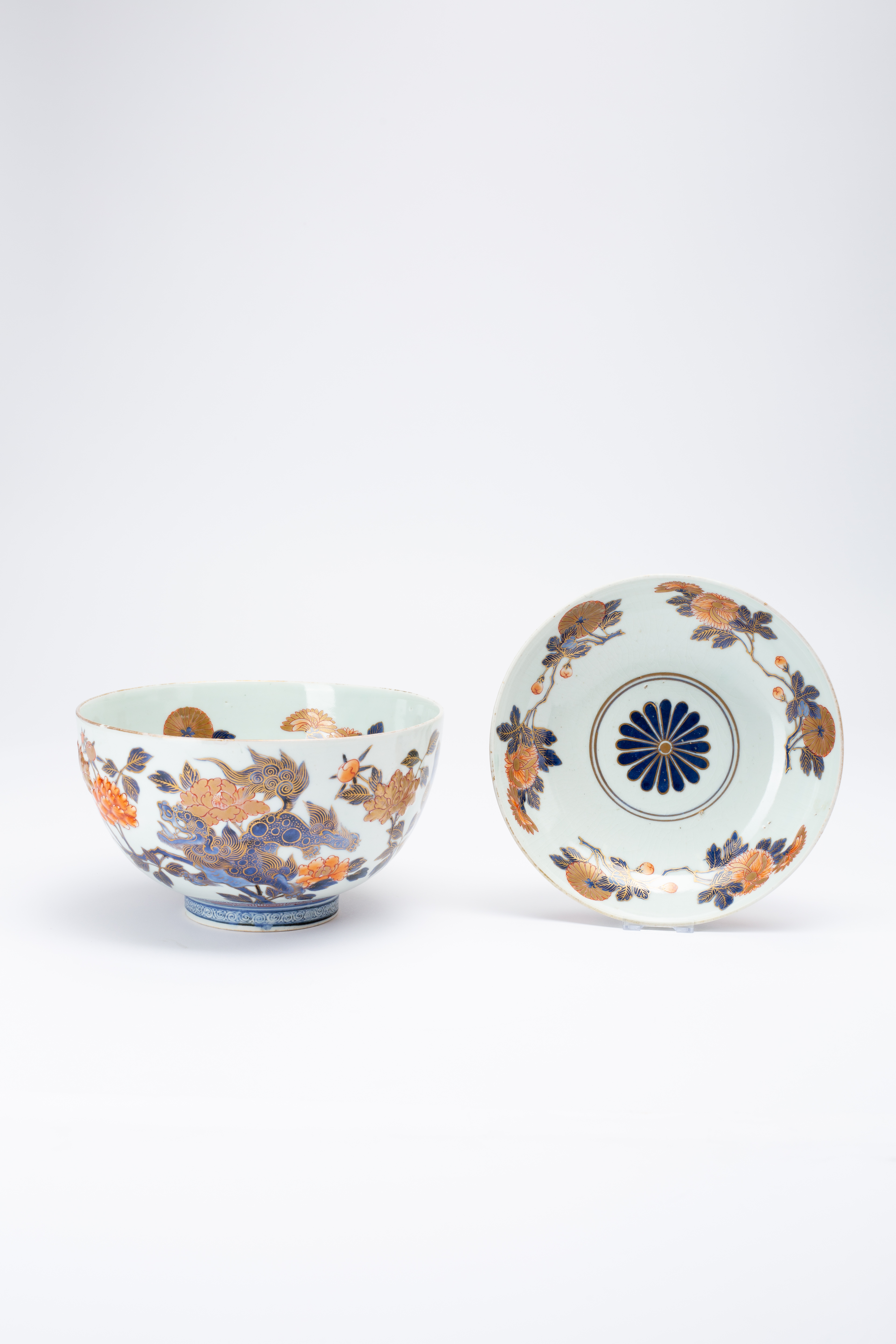 A JAPANESE IMARI MOULDED BOWL AND COVER
