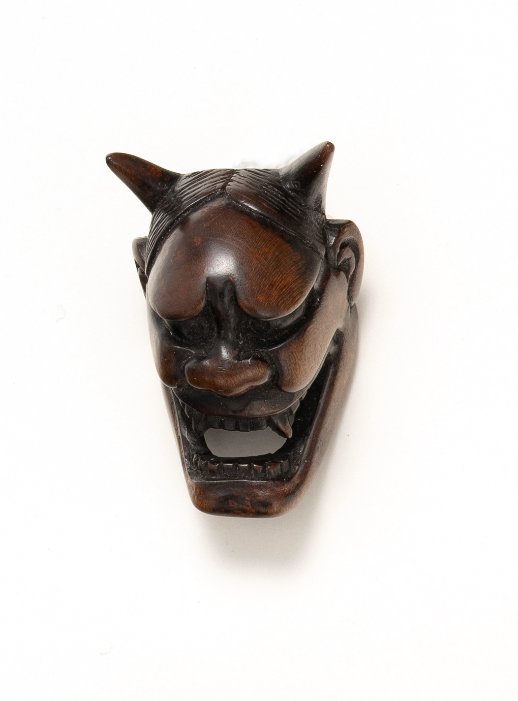 A JAPANESE WOOD MASK NETSUKE OF HANNYA
