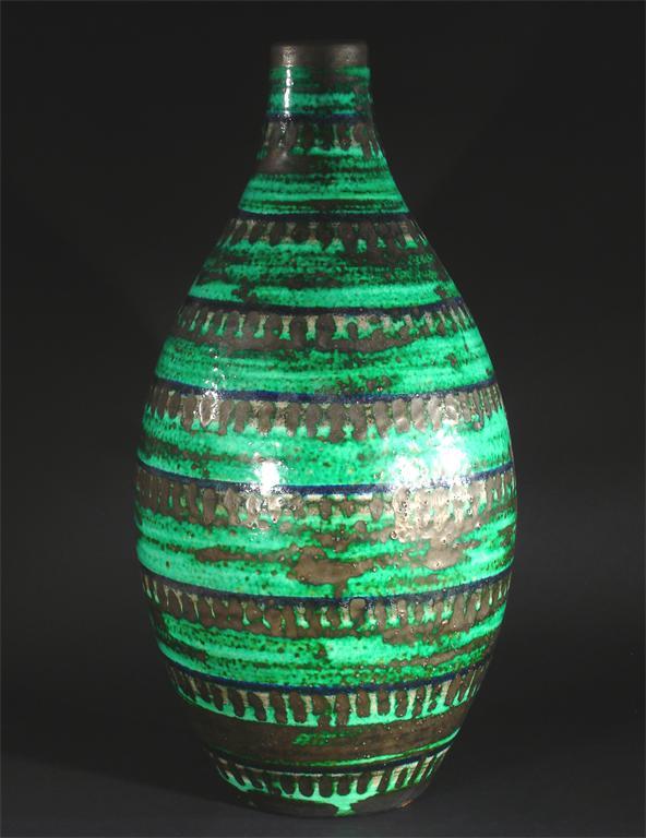 A large Ceramano, Germany Tourmalin glaze vase shape no.27 decorated with bands incised marks 54cm. high Literature Mark Hill Fat Lava Mark Hill Publishing pages 38-42 for comparable examples