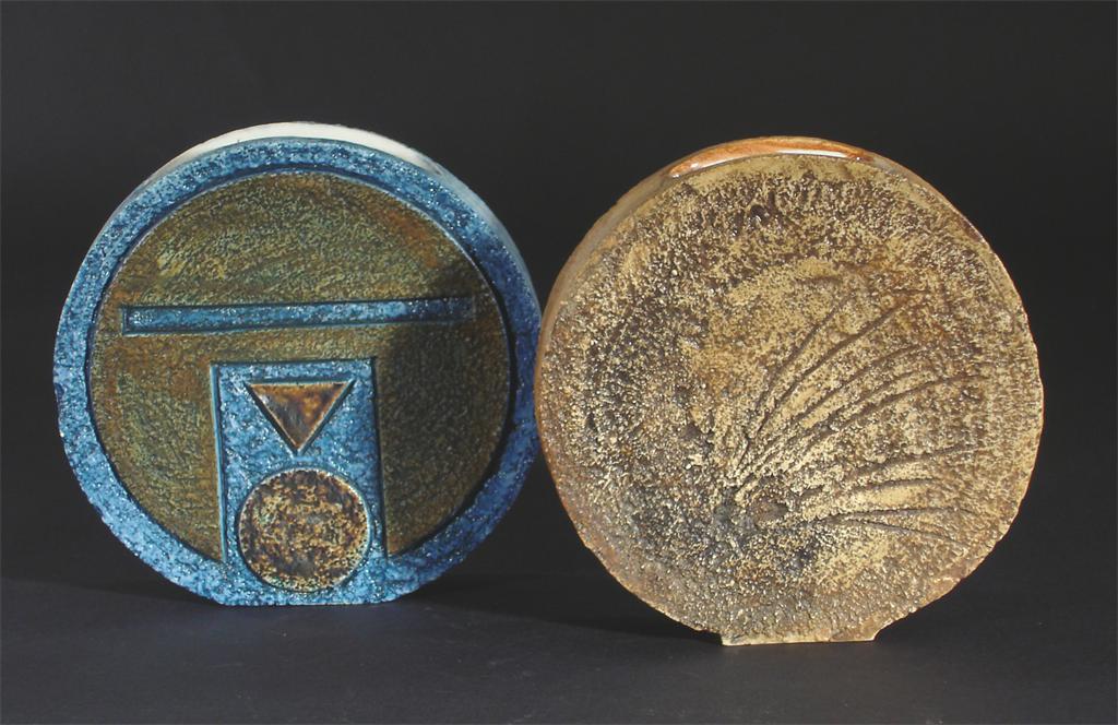 Two Troika Pottery Wheel vases painted in colours painted and printed marks 11.5cm. high