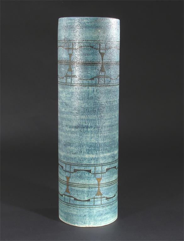 A tall Troika Pottery Cylinder vase by Honor Curtis