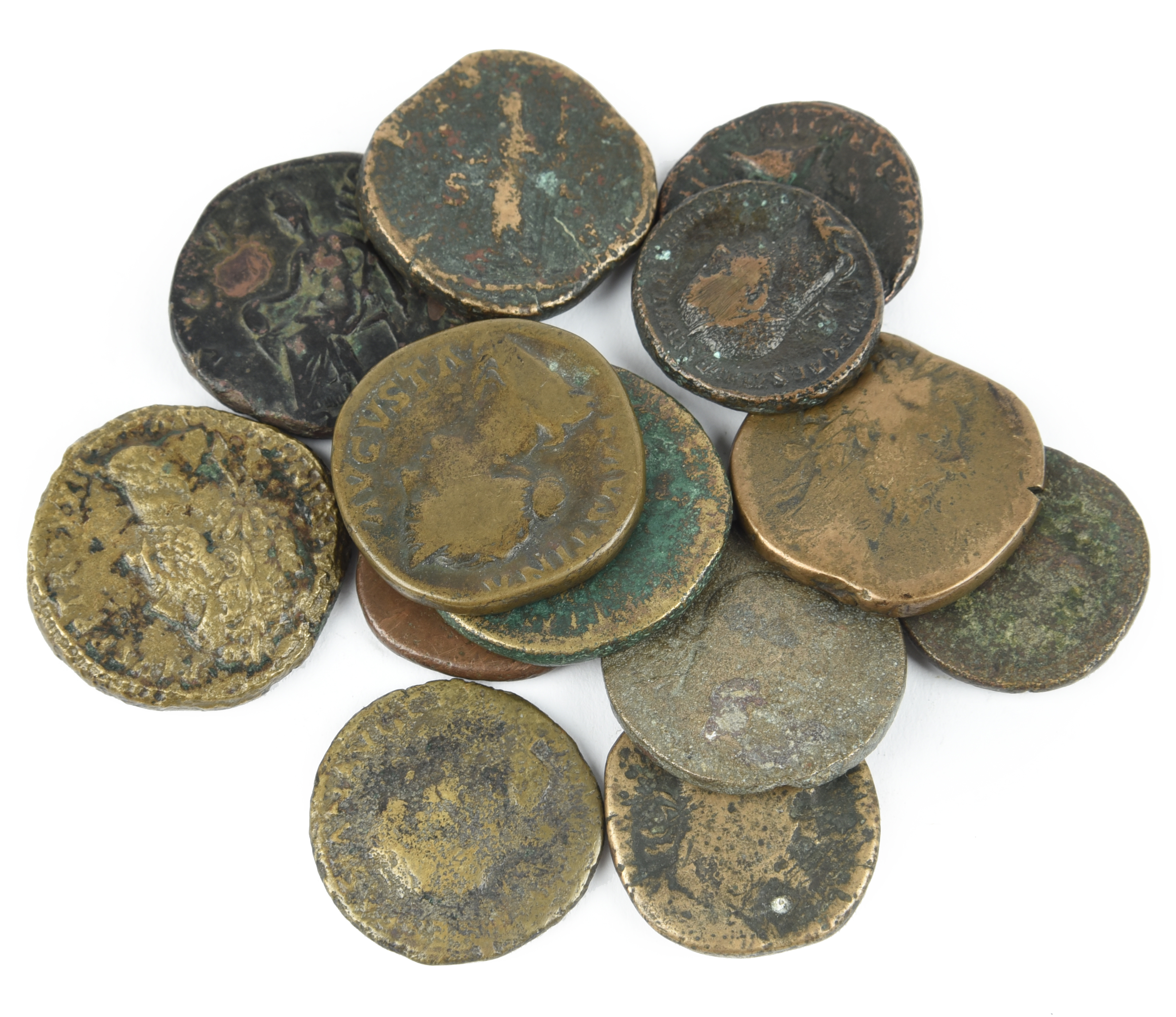 Roman Imperial coins: a small assortment of large Æ coins, dupondii and smaller, fair and a little better. [13]