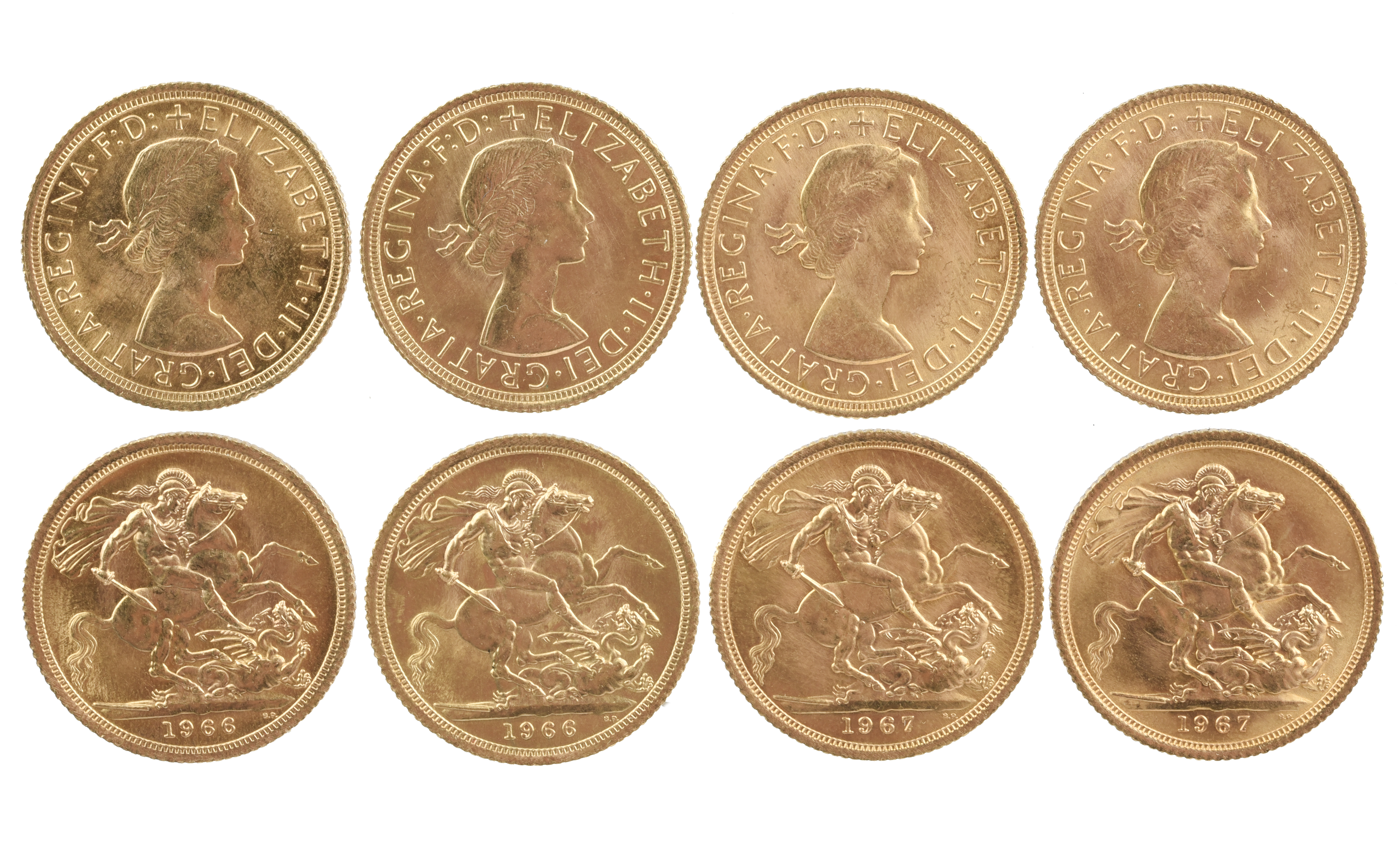 Elizabeth II, gold sovereigns (4), 1966 (2), 1967 (2) (S 415), extremely fine. [4]