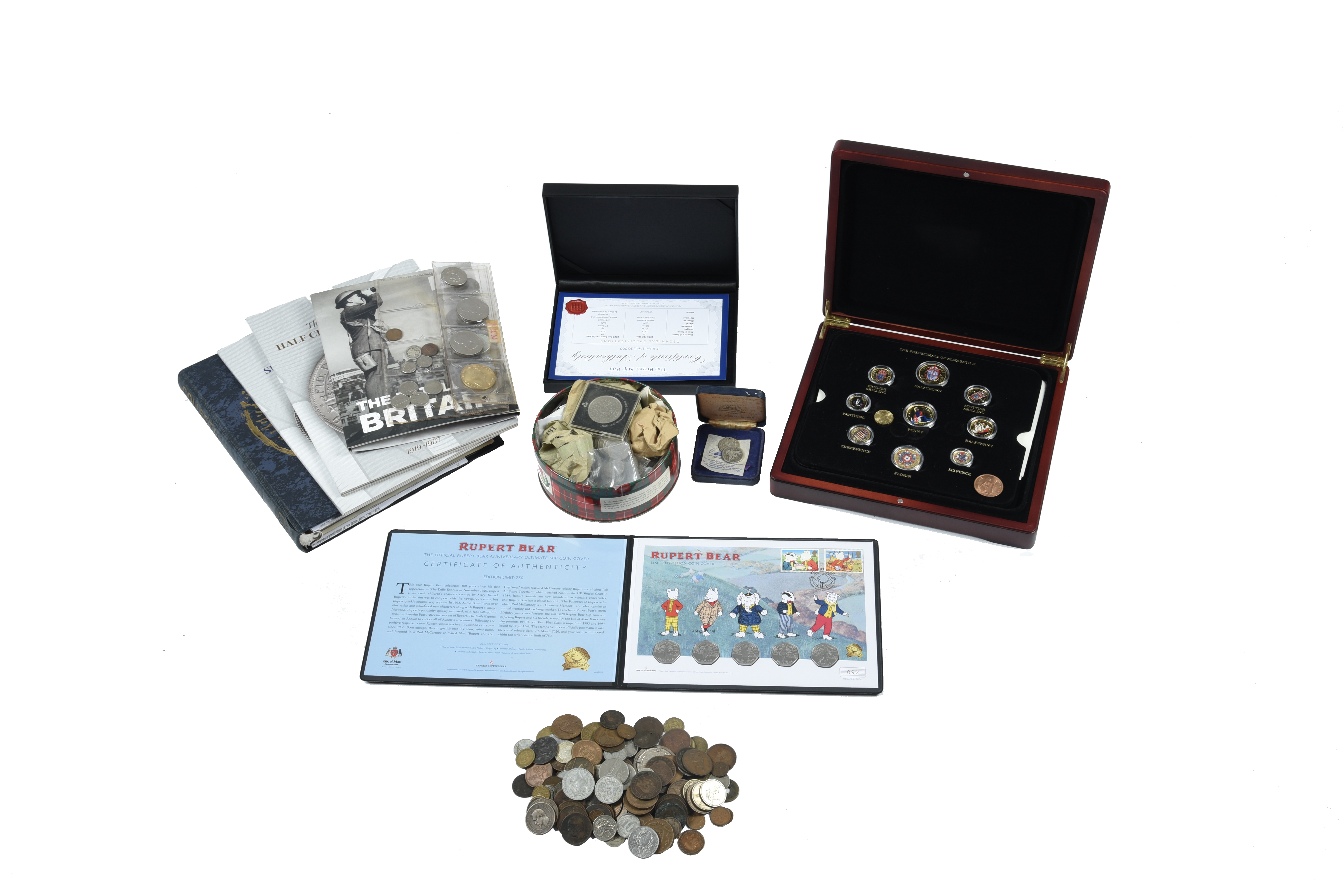 A large numbers of coins, mainly British late pre-decimal issues, commemorative issues in packs and loose, sets in collectors' albums, and other items. [qty]