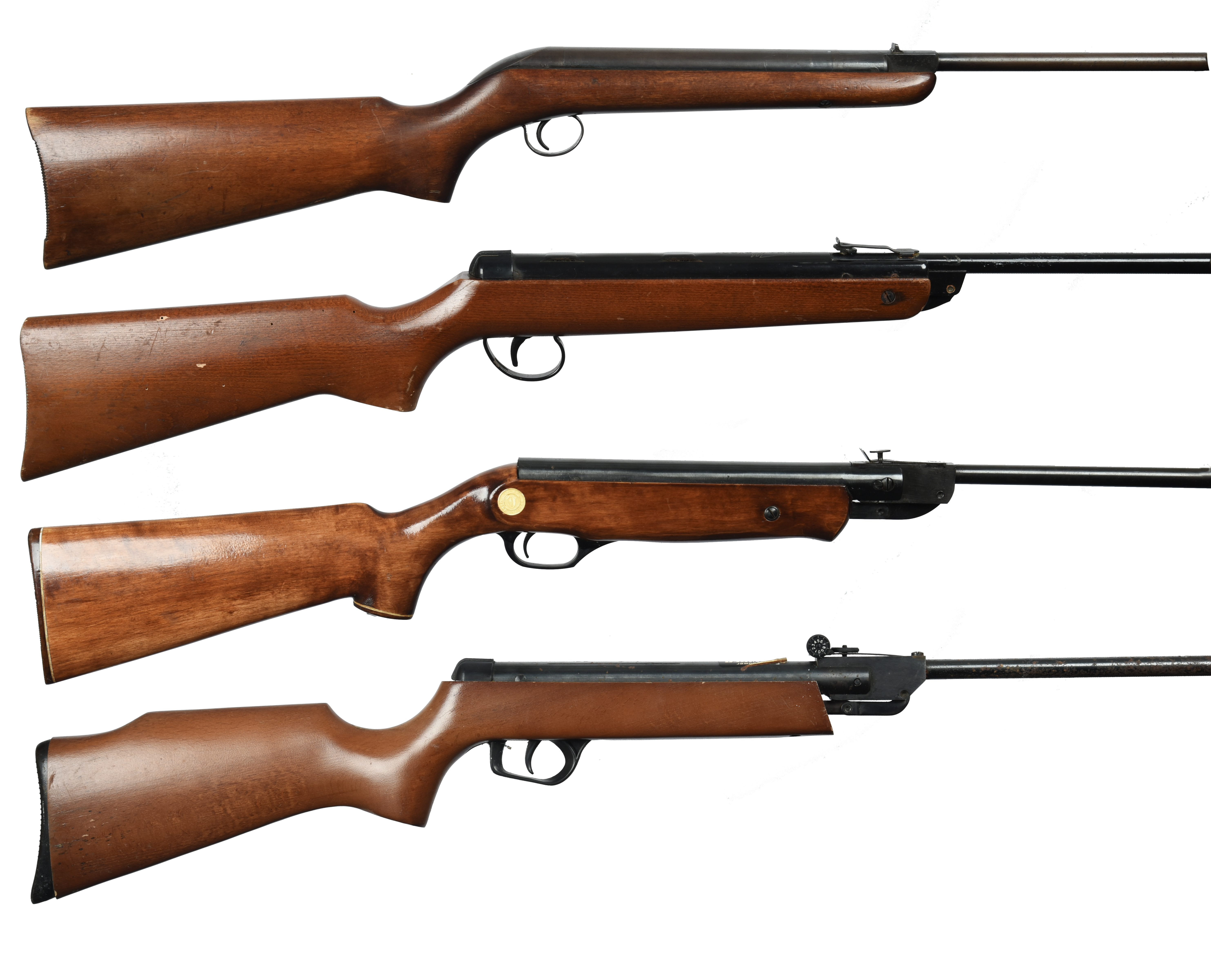 Four barrel cocking air rifles, as follows: a .177 BSA Cadet, serial number B60525; a .22 BSA