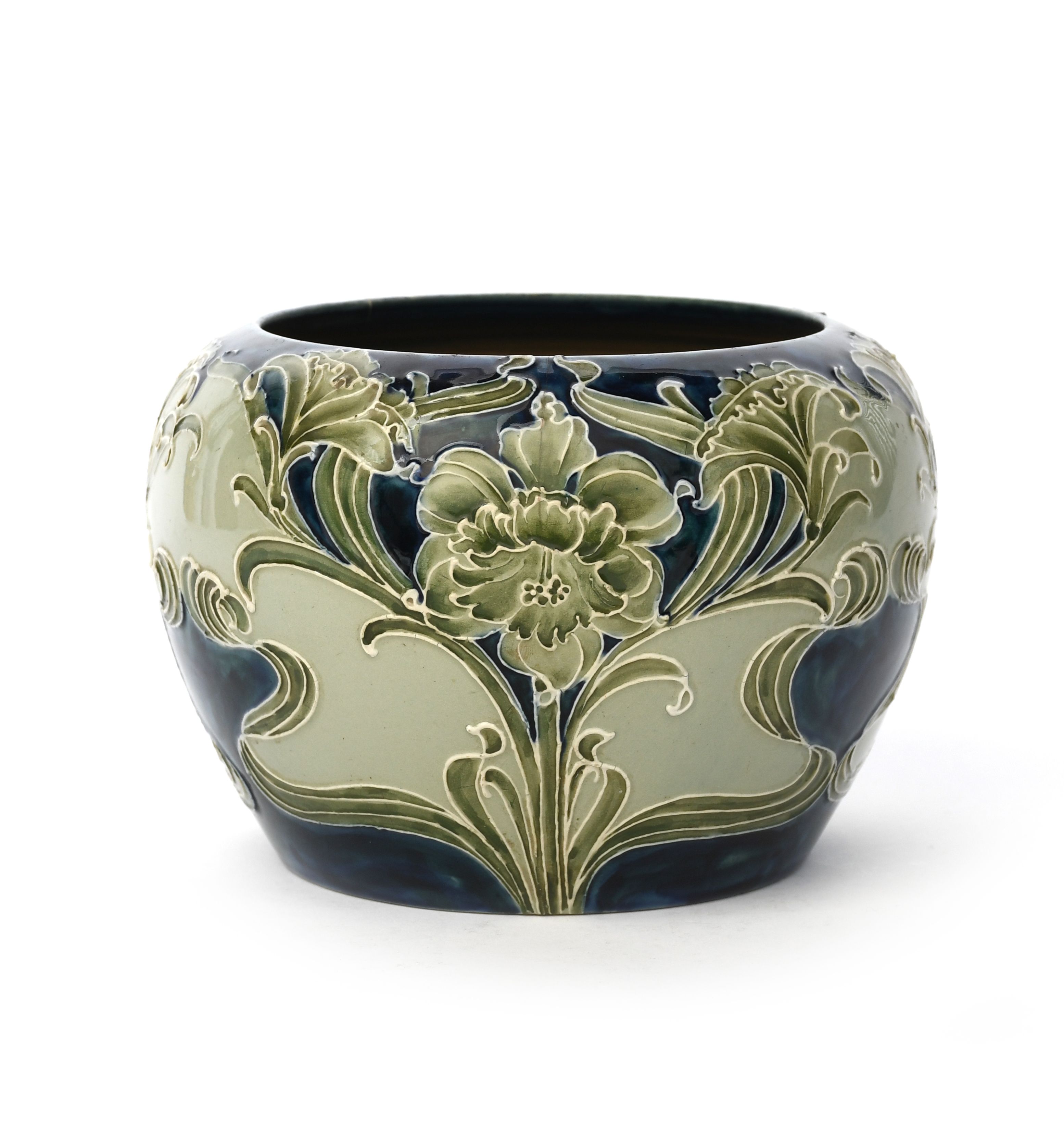 'Daffodil' a Moorcroft Pottery vase designed by William Moorcroft, flaring cylindrical form with