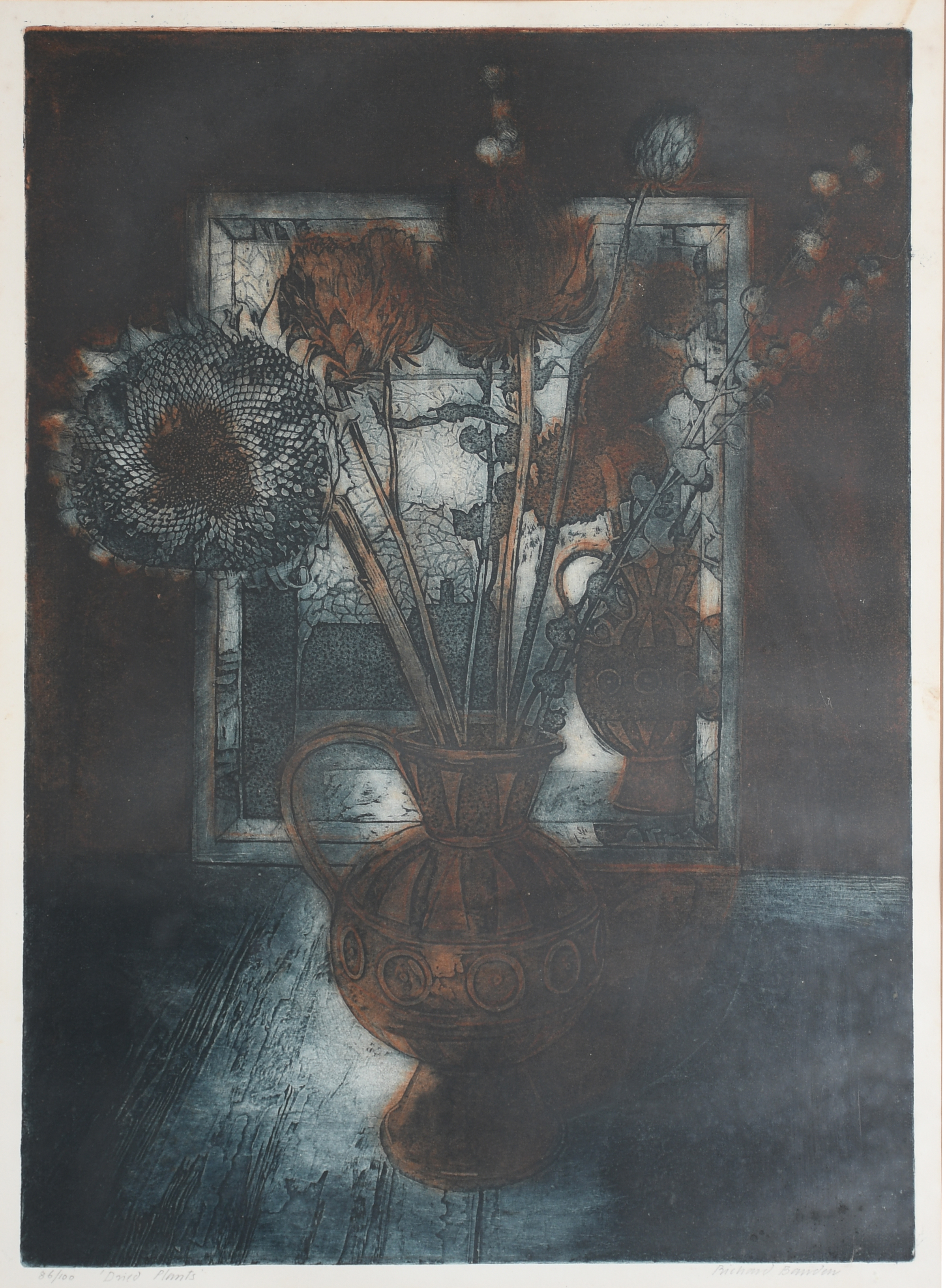 aquatint on paper, framed, and Dried Plants an aquatint by Richard Bawden,
