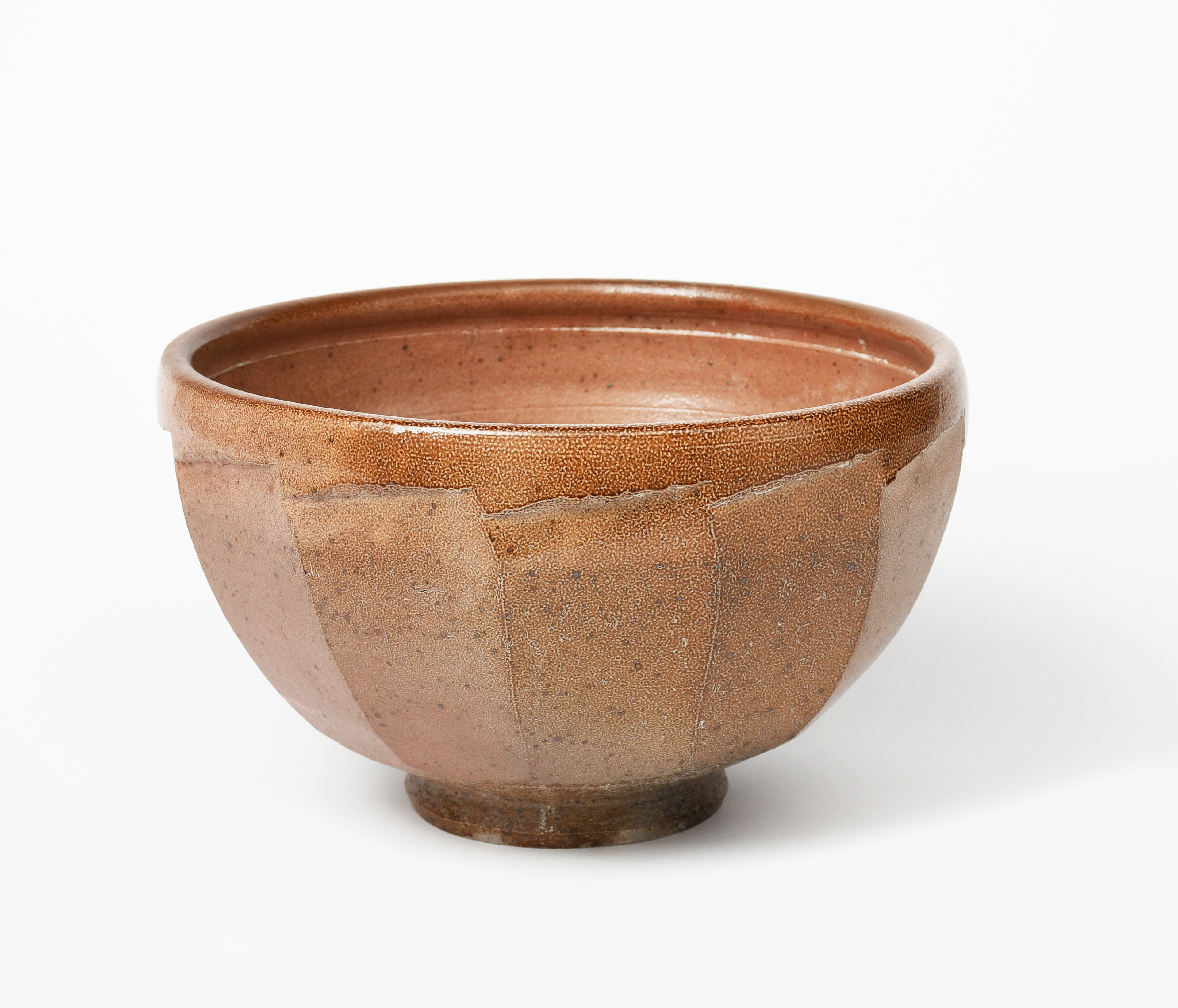 a large cut-sided stoneware bowl, covered in a salt glaze