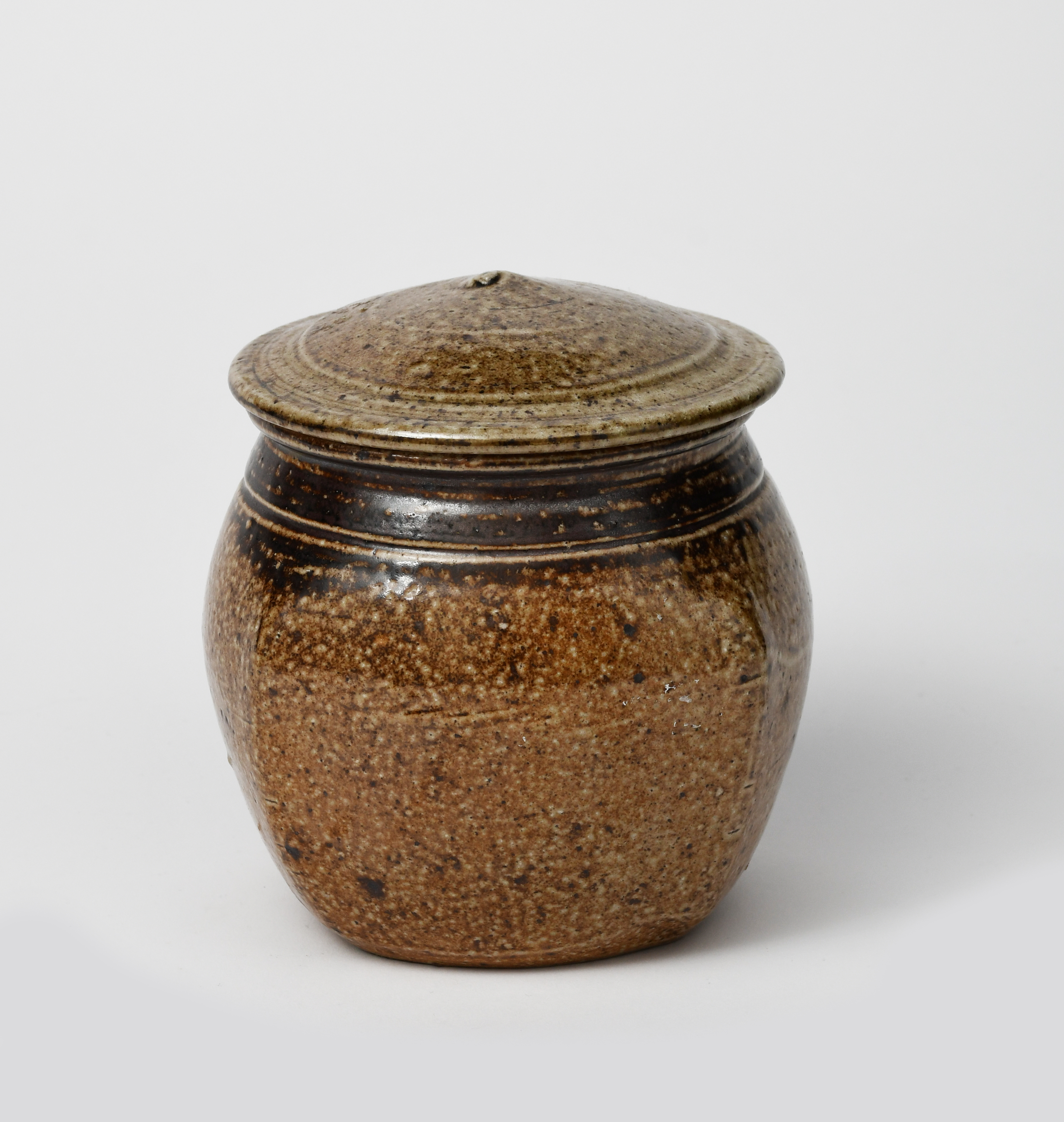 a salt glaze stoneware little beaten jar and cover,