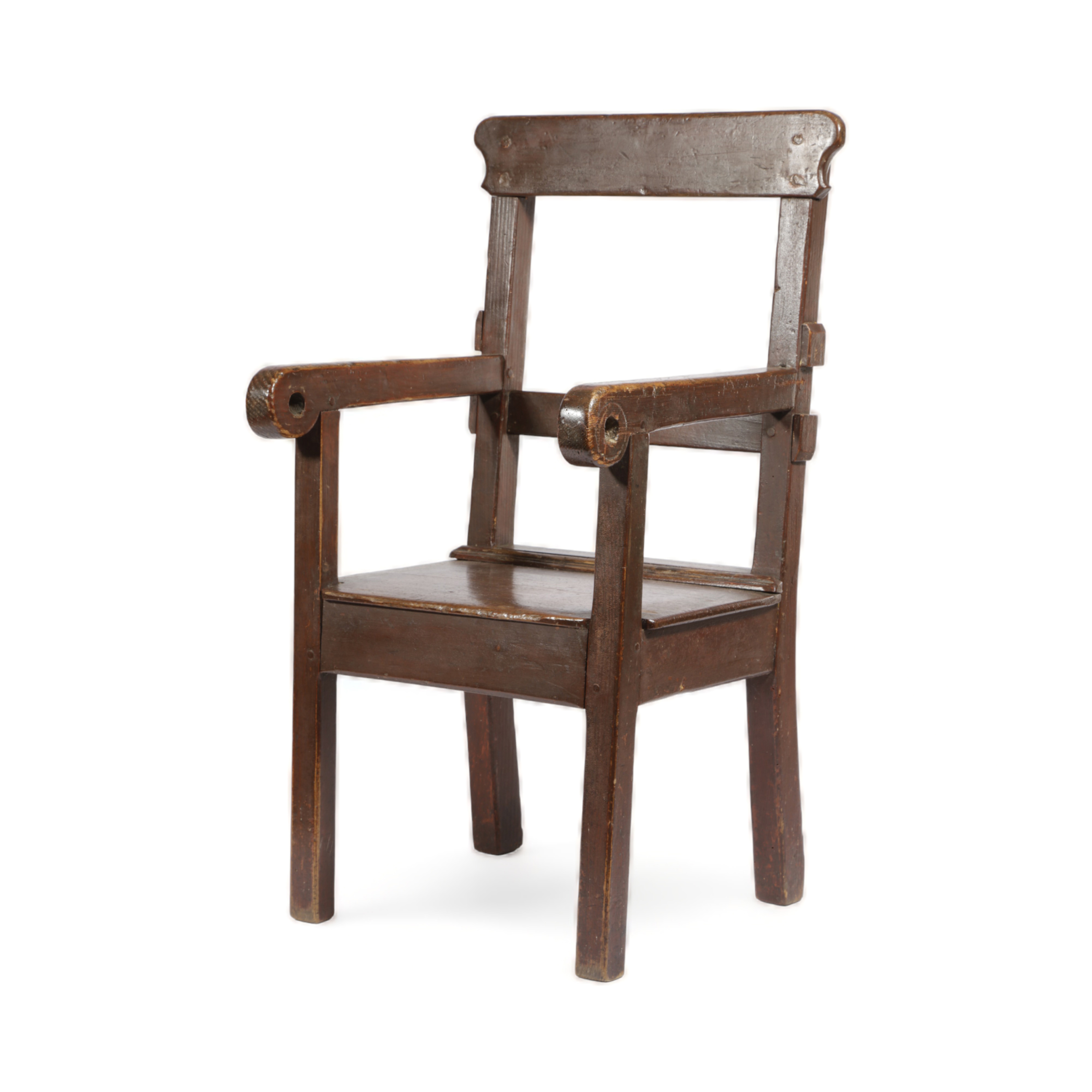 A FOLK ART PAINTED PINE CHILD'S ARMCHAIR