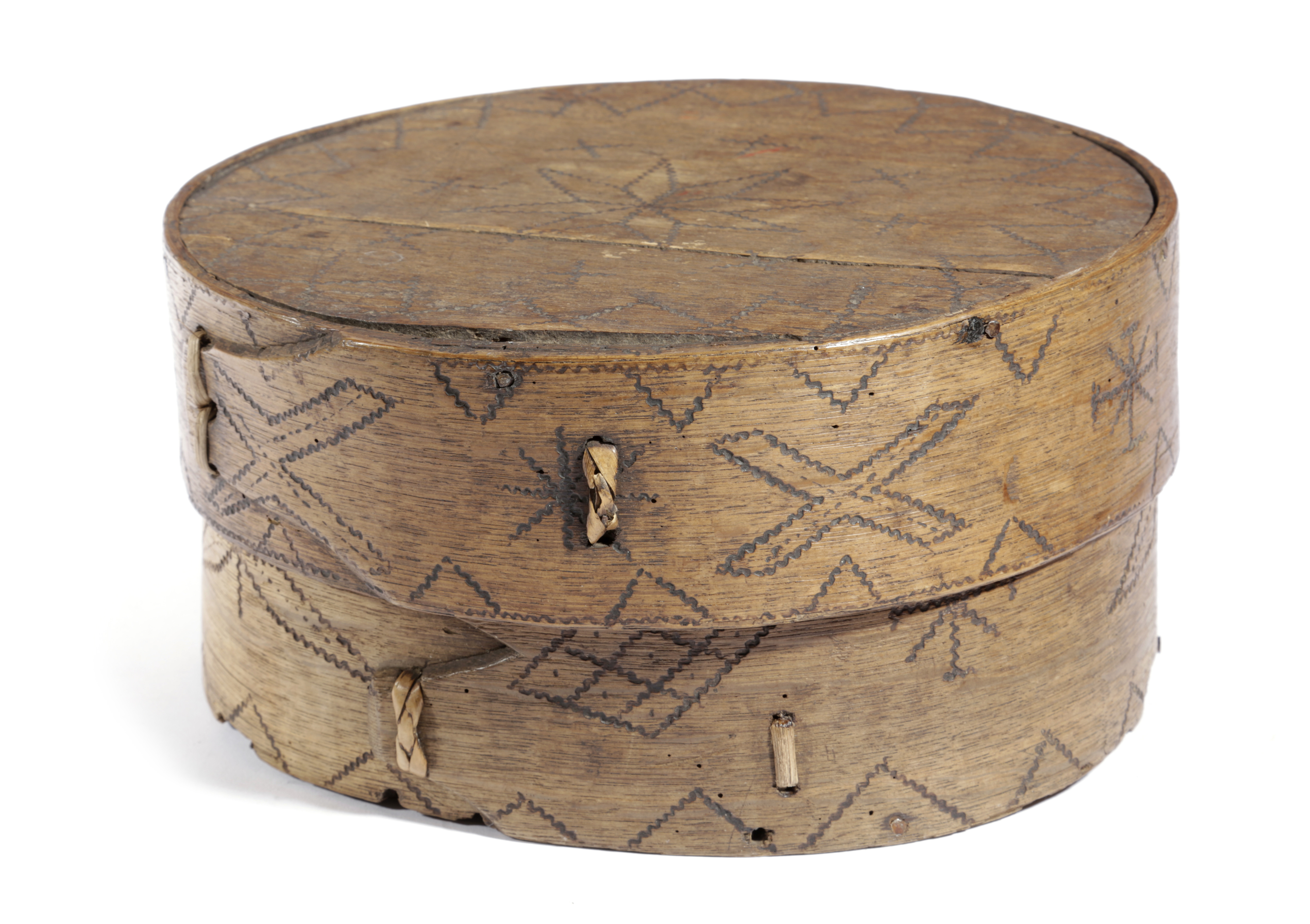 A SHAKER CIRCULAR BENTWOOD FOOD BOX AND COVER