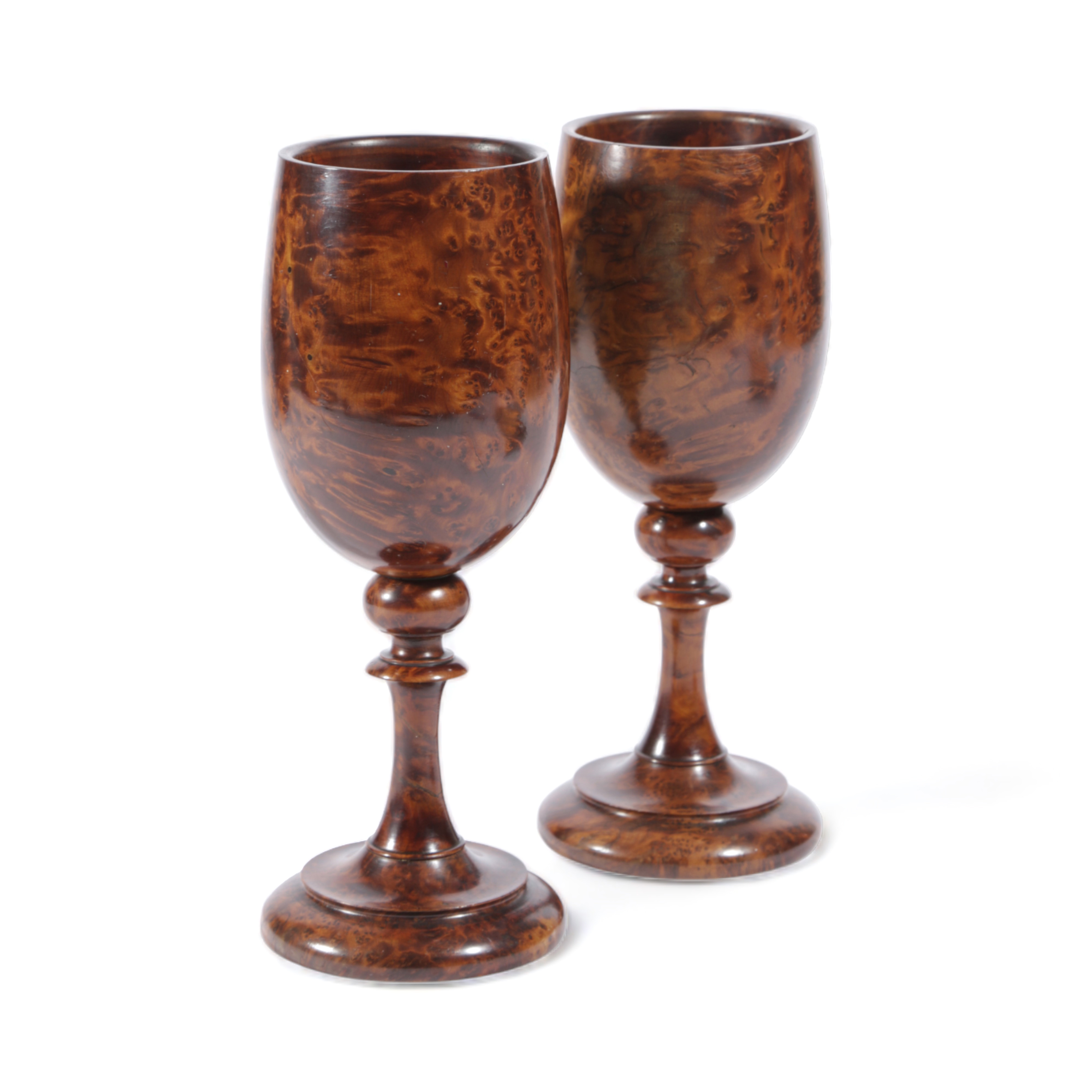 A PAIR OF TREEN BURR MAPLE GOBLETS