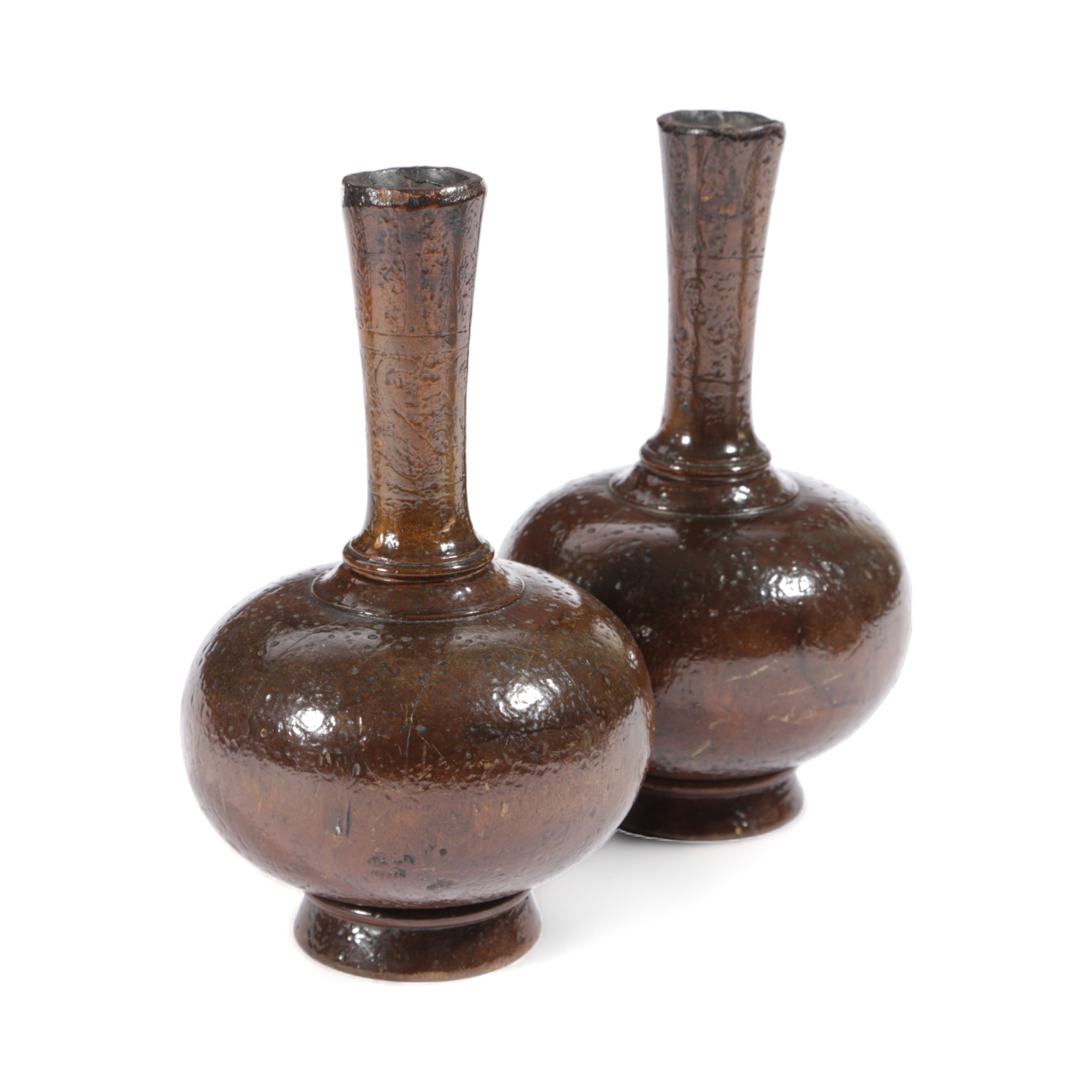 A PAIR OF TREEN FLASKS OR MOULDS