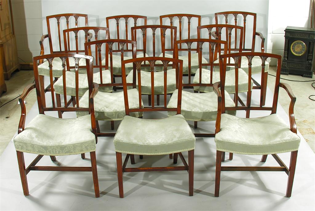 A set of twelve Sheraton period mahogany dining chairs