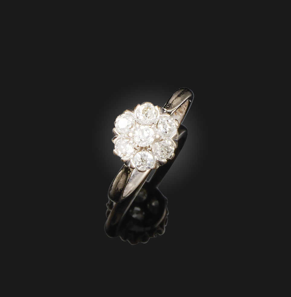 A diamond ring, early 20th century, of floral cluster design, set with circular-cut diamonds,