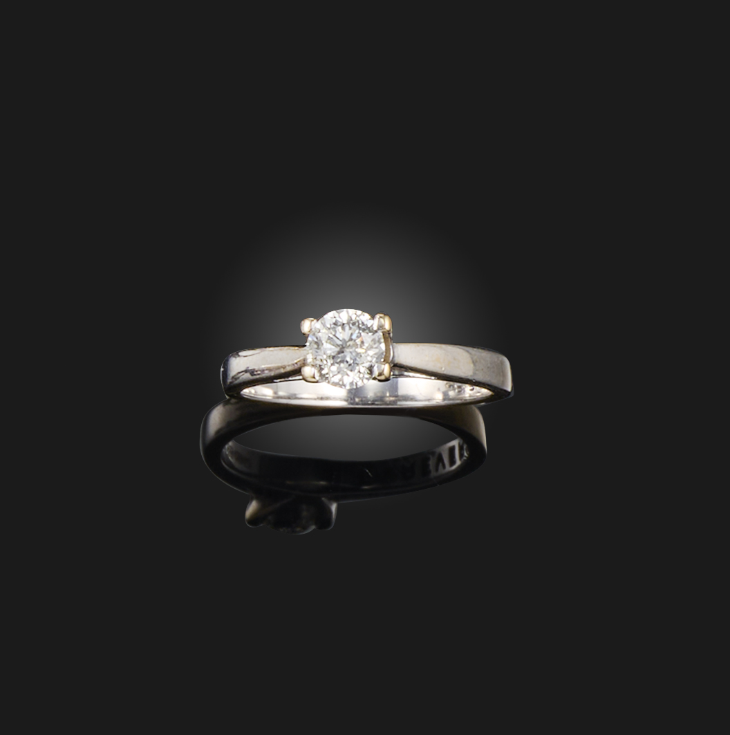 A diamond solitaire ring, claw-set with a brilliant-cut diamond weighing approximately 0.50 carats, mounted in 18ct white gold, size M, British hallmarks, stamped 'Forever'