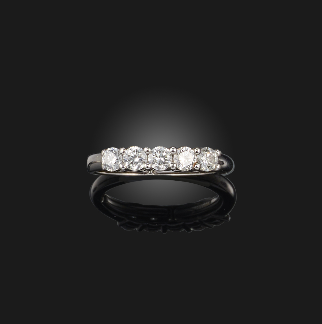 A five-stone diamond ring, set with a sequence of five brilliant-cut diamonds totalling 1.00 carat,