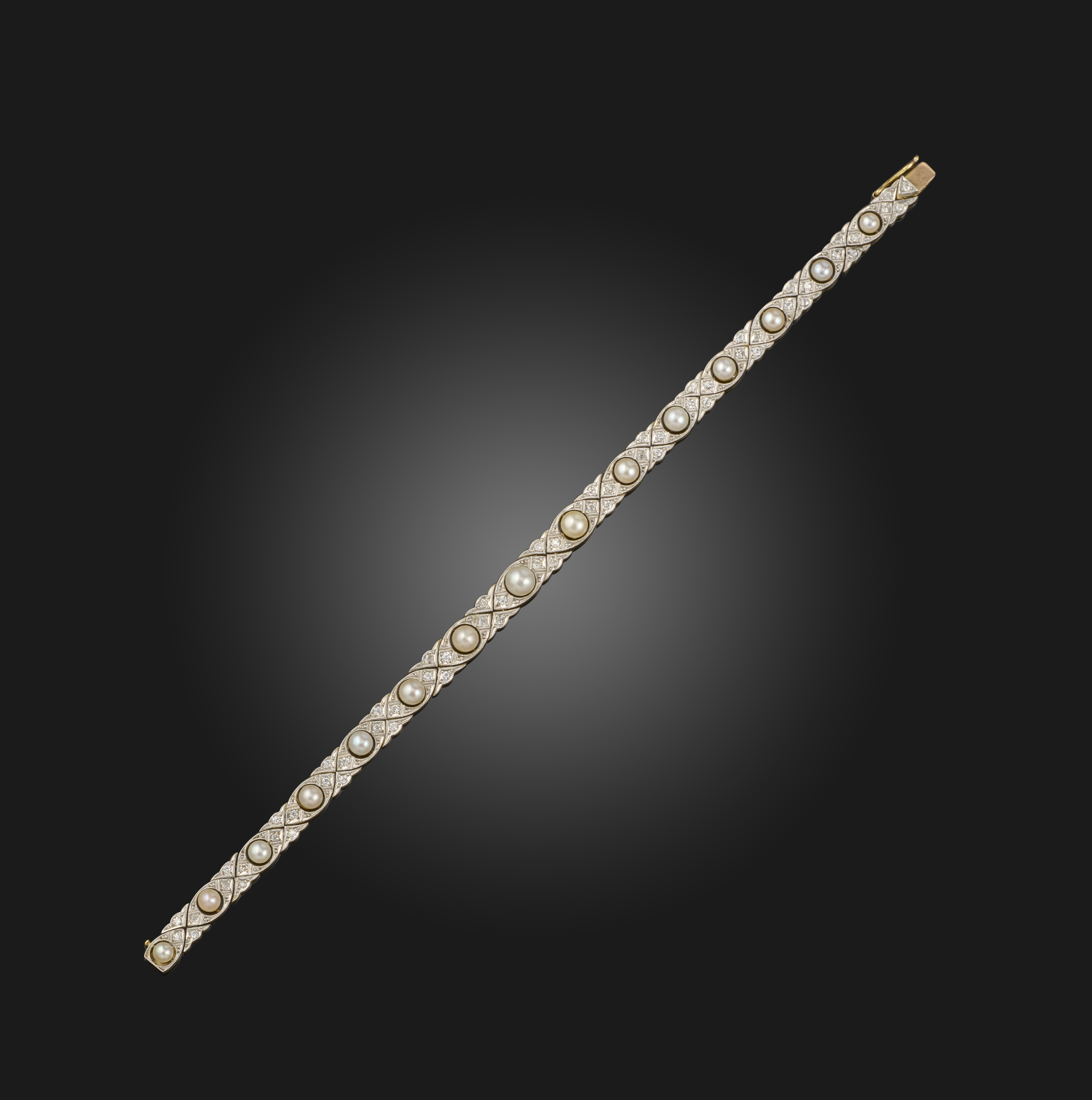 An Edwardian pearl and diamond bracelet, the bouton-shaped pearls within millegrain-set diamond