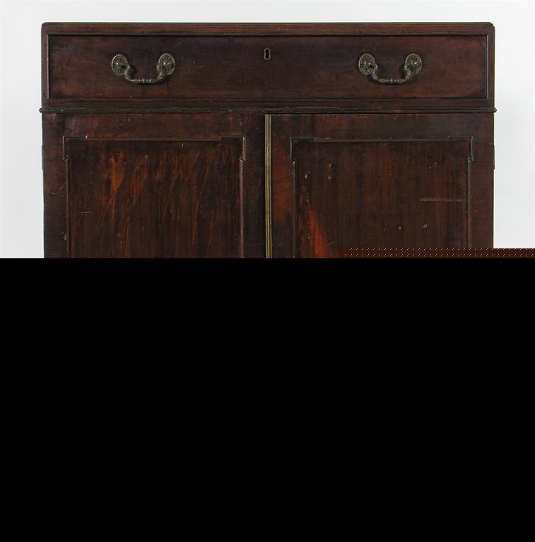 A late 19th century mahogany side cabinet, the caddy moulded edge above a frieze drawer and a pair of cupboard doors, with moulded square corner panels, on bracket feet, 39.75in (101cm) h, 37in (94cm) w, 16.5in (42cm) d.
