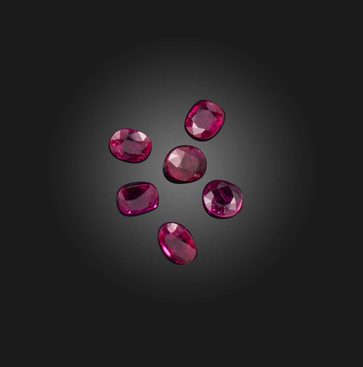 † Six oval-shaped faceted rubies, weighing 5.86cts total