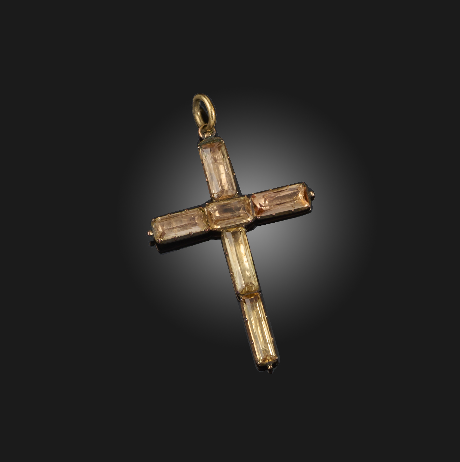 A George III topaz pendant, early 19th century, designed as a cross, set with foil-backed elongated