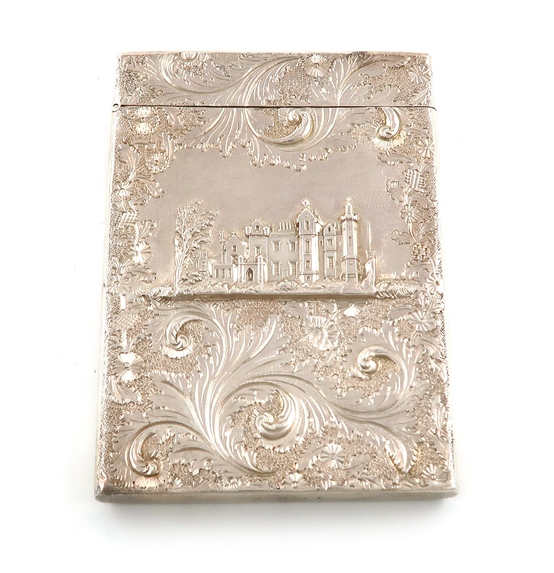 A William IV silver double-sided 'Castle-top' card case, Abbotsford House and Newstead Abbey,