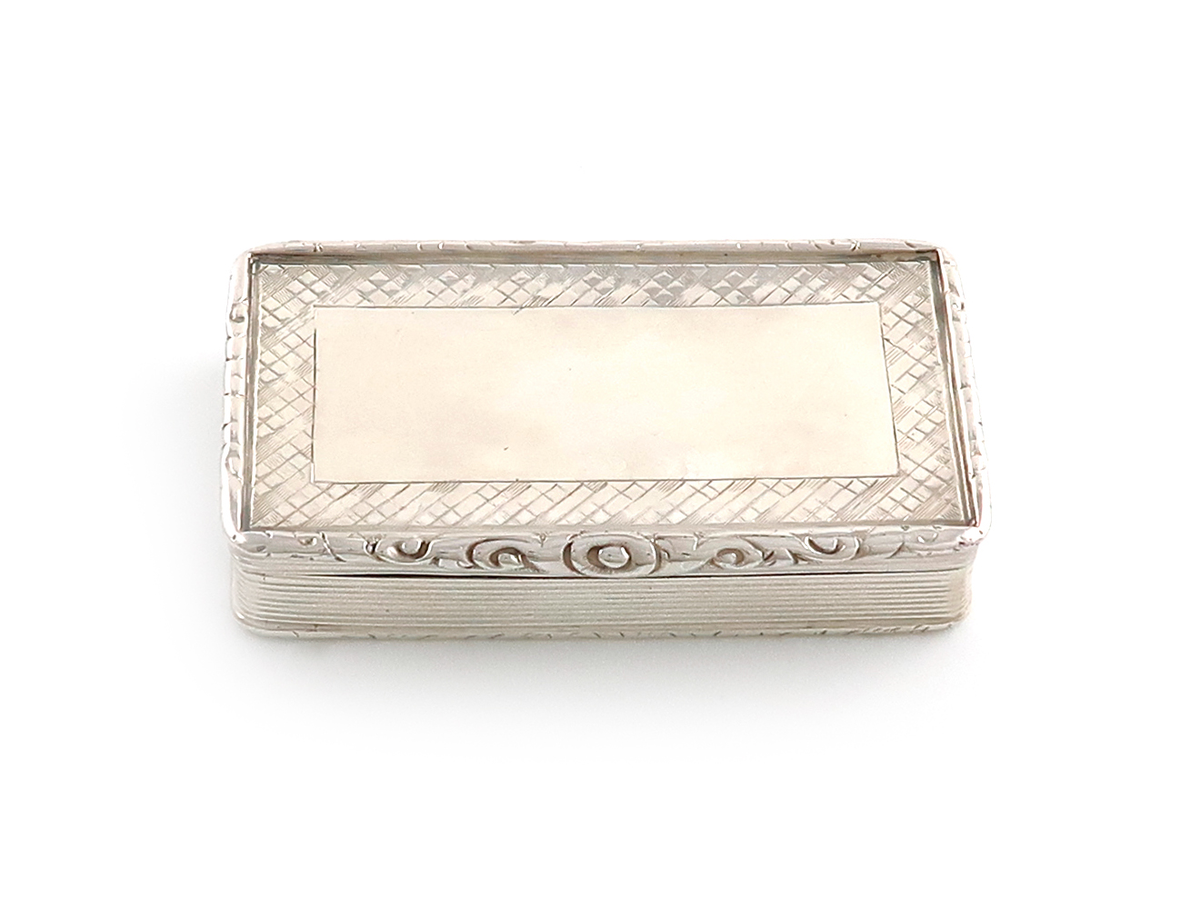 rectangular form, engraved cross-hatched decoration, reeded sides, length 7.5cm, approx. weight 2.5oz.