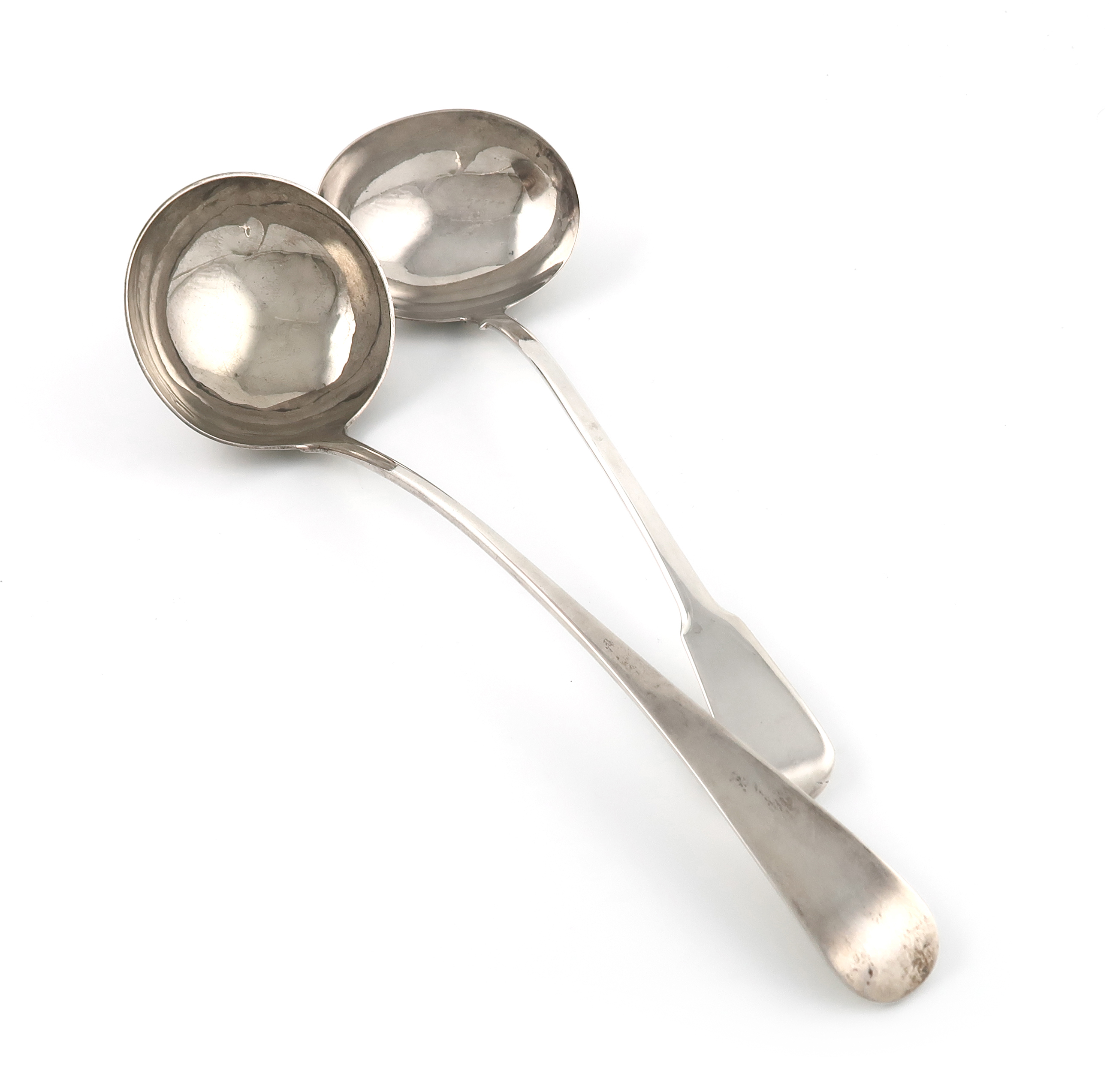 plain terminal, plus a George III silver Fiddle pattern soup ladle, London 1808, approx. total weight 10oz. (2)