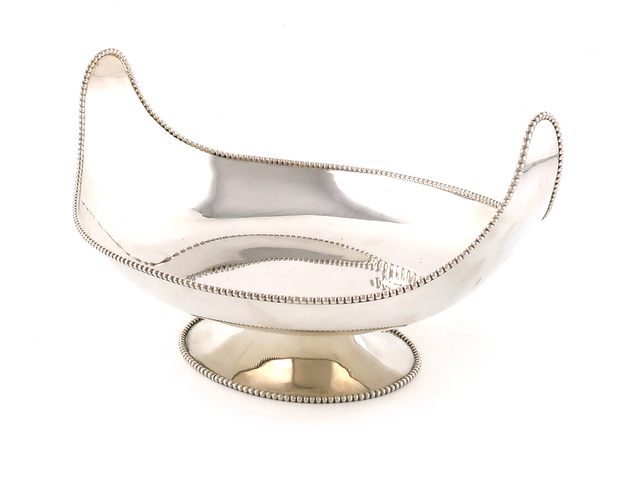 oval form, raised ends, beaded borders, length 28cm, approx. weight 23.8oz.