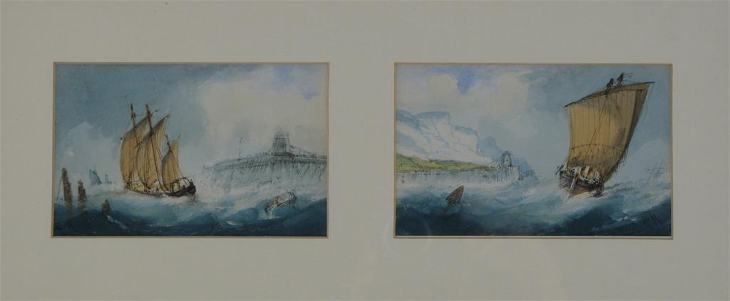Richmond Markes (19/20th Century) Sailing boats in storms seas off the coast A pair